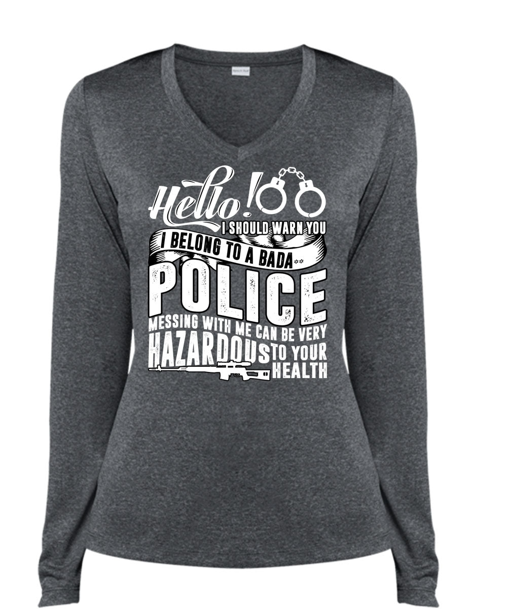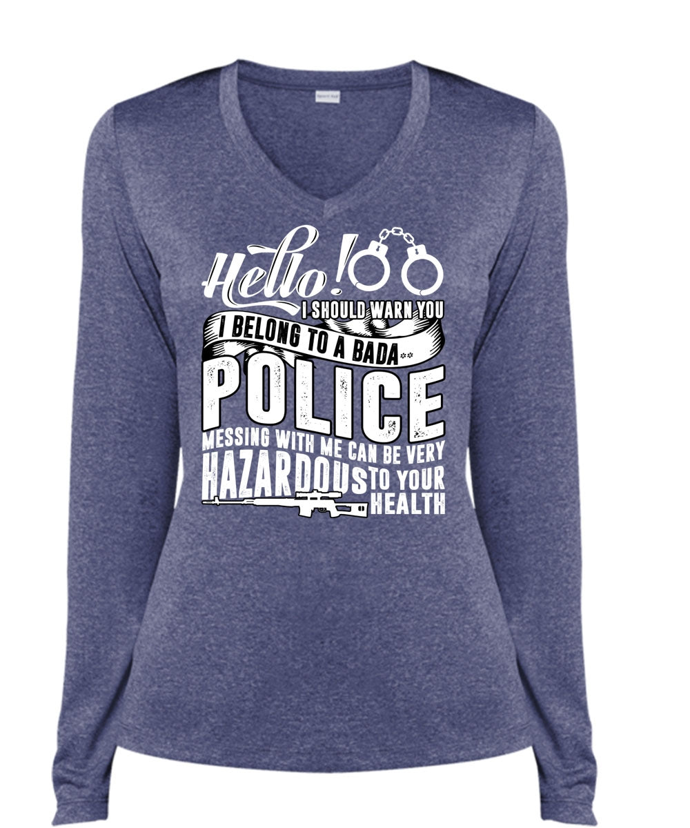 I Belong To A Police T Shirt, Being A Police T Shirt, Cool Shirt (Ladies LS Heather V-Neck)