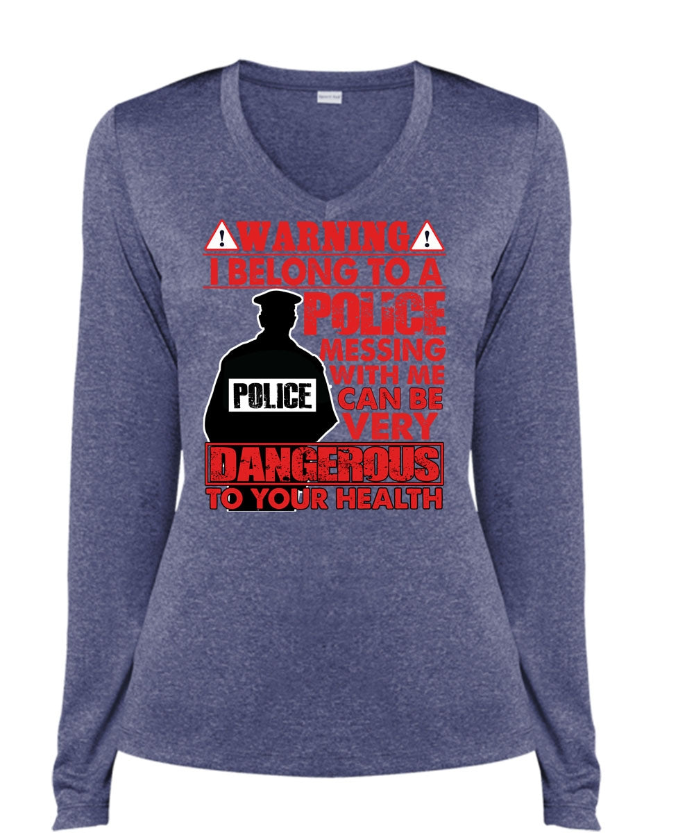 I Belong To A Police T Shirt, Dangerous To Your Health T Shirt, Cool Shirt (Ladies LS Heather V-Neck)