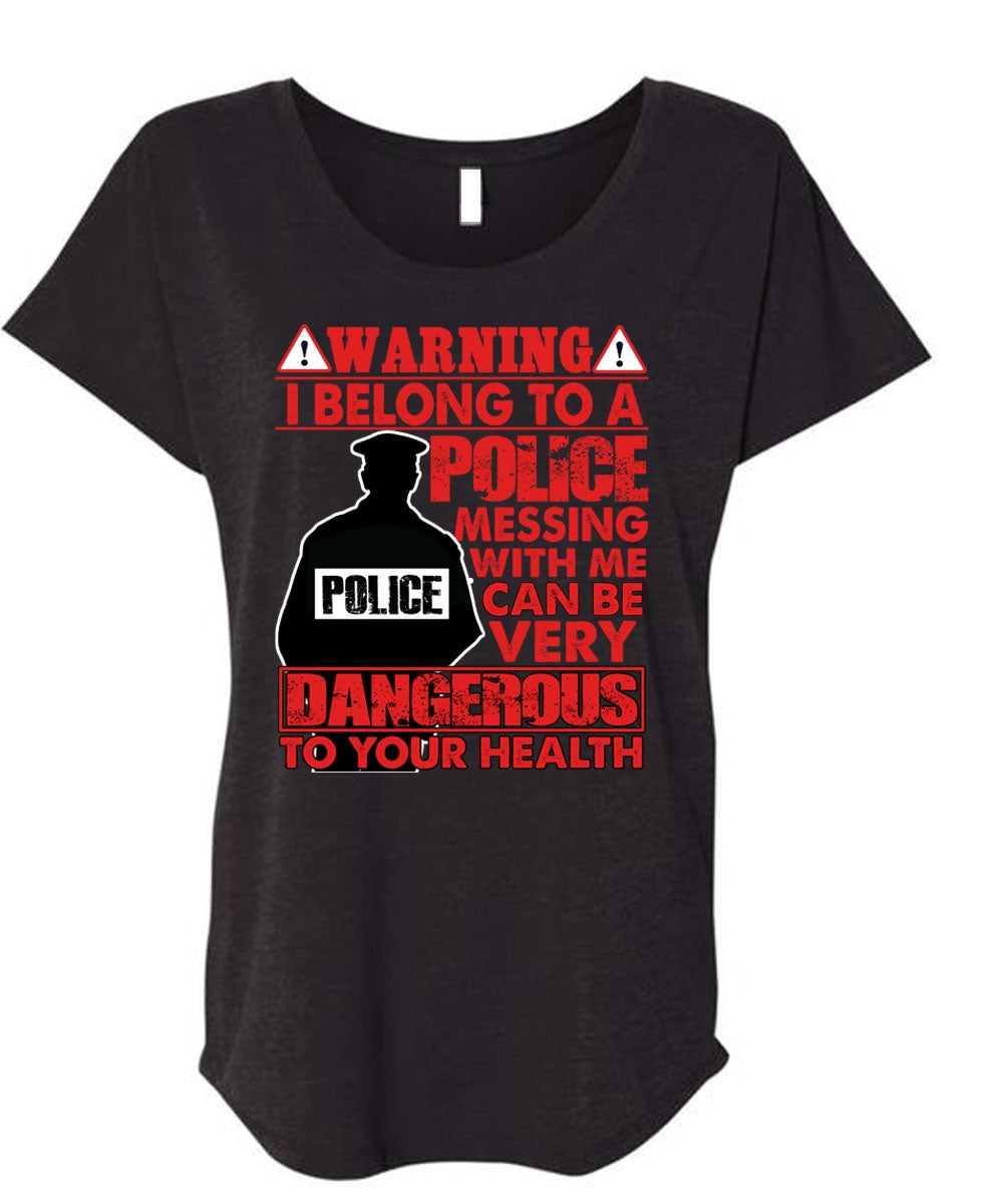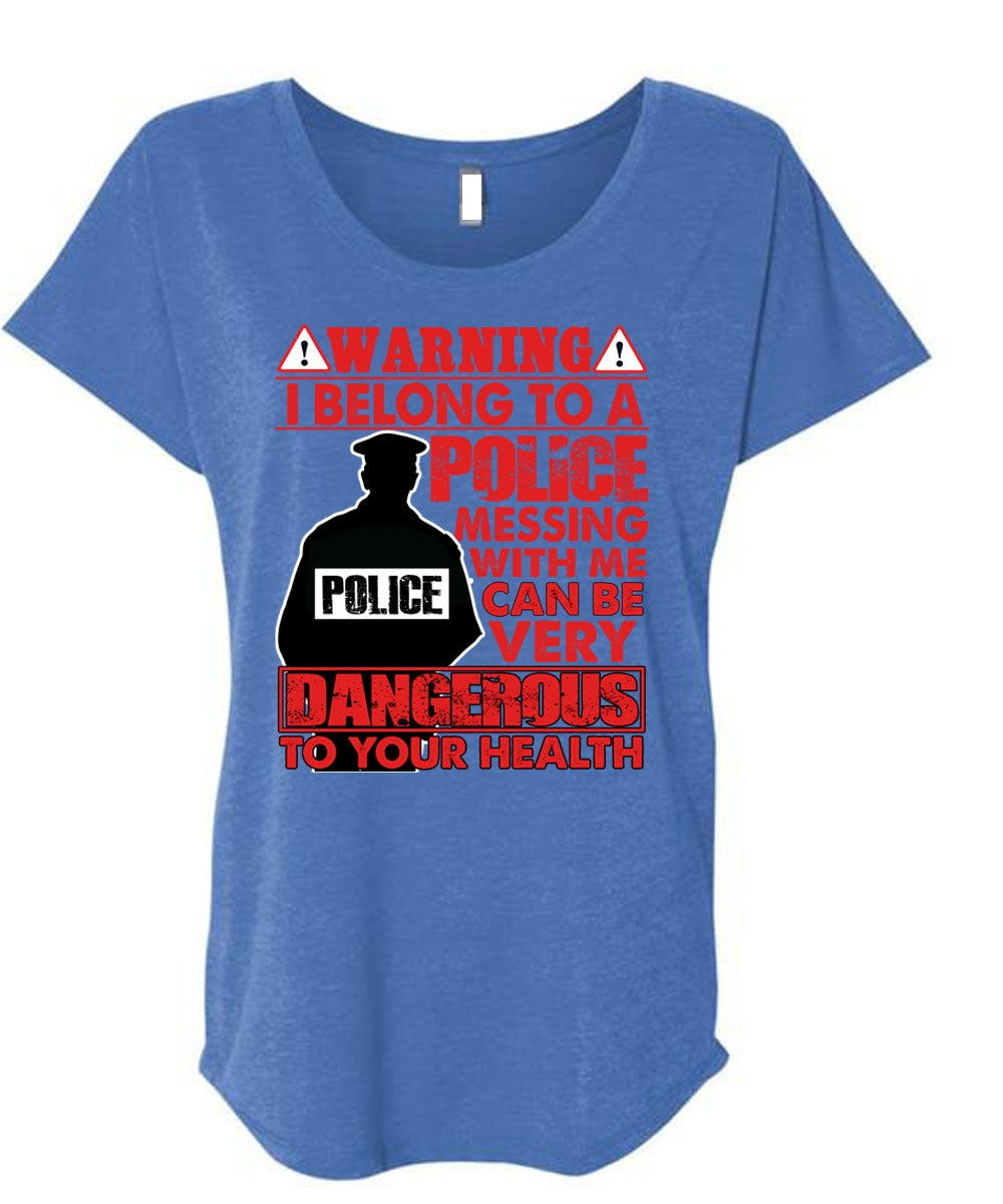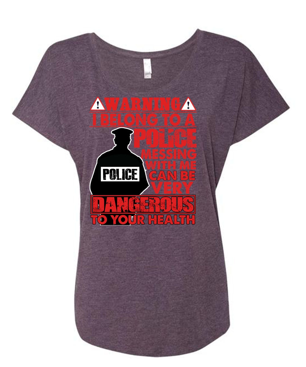 I Belong To A Police T Shirt, Dangerous To Your Health T Shirt, Cool Shirt (Ladies' Triblend Dolman Sleeve)