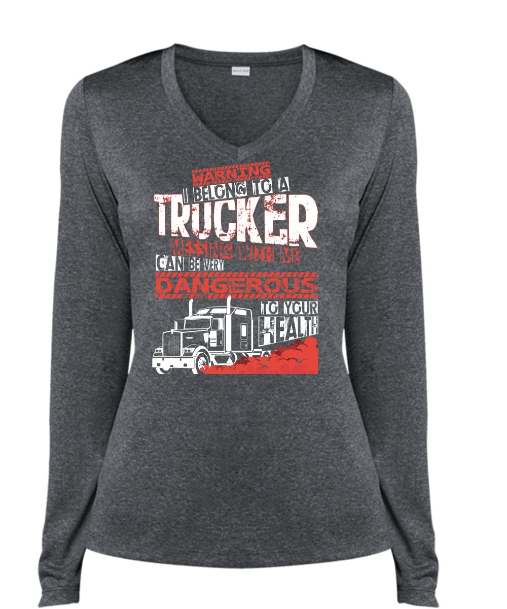 I Belong To A Trucker T Shirt, Being A Trucker T Shirt, Cool Shirt (Ladies LS Heather V-Neck)