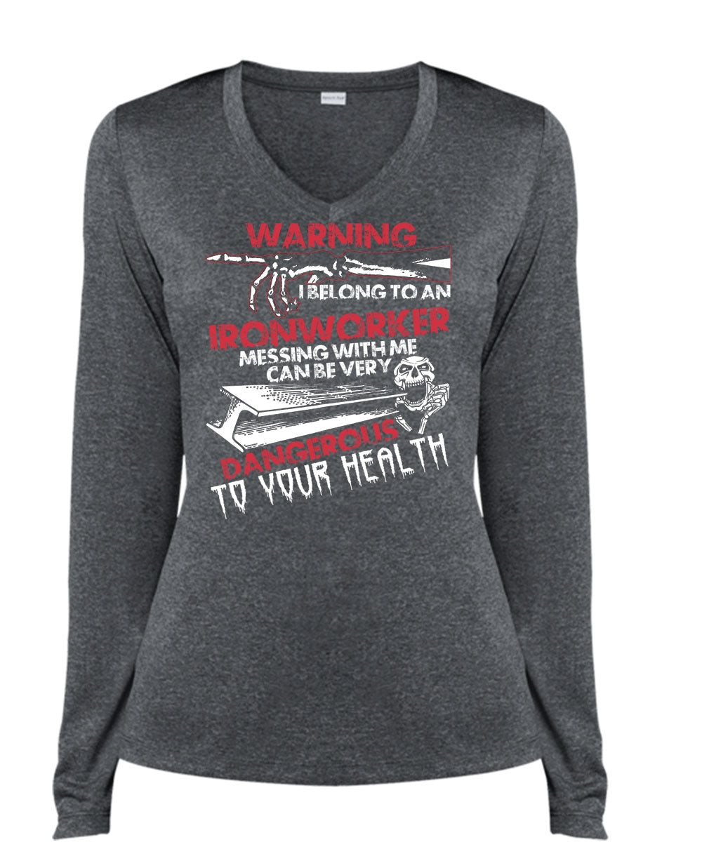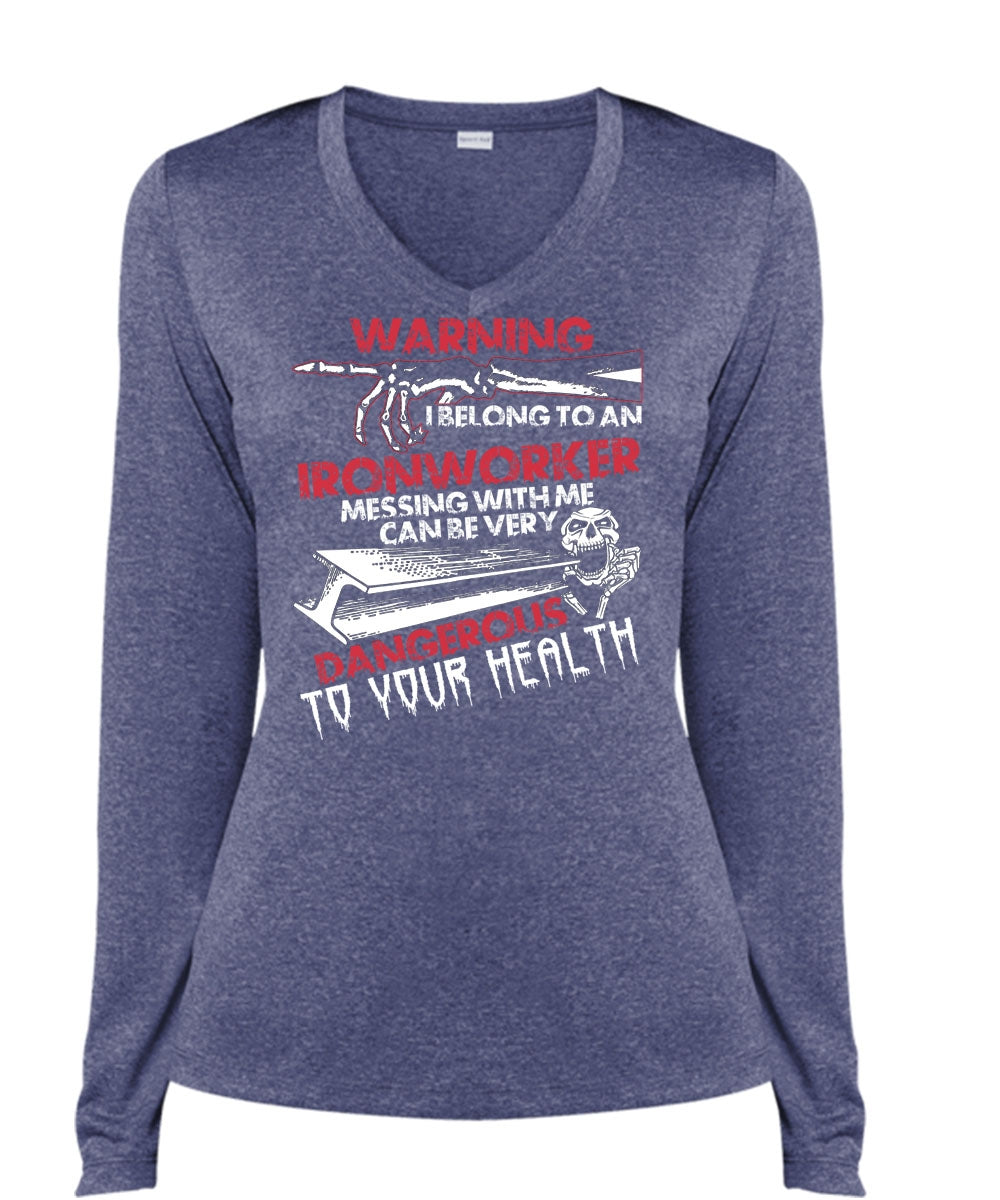 I Belong To An Ironworker T Shirt, Dangerous To Your Health T Shirt, Cool Shirt (Ladies LS Heather V-Neck)