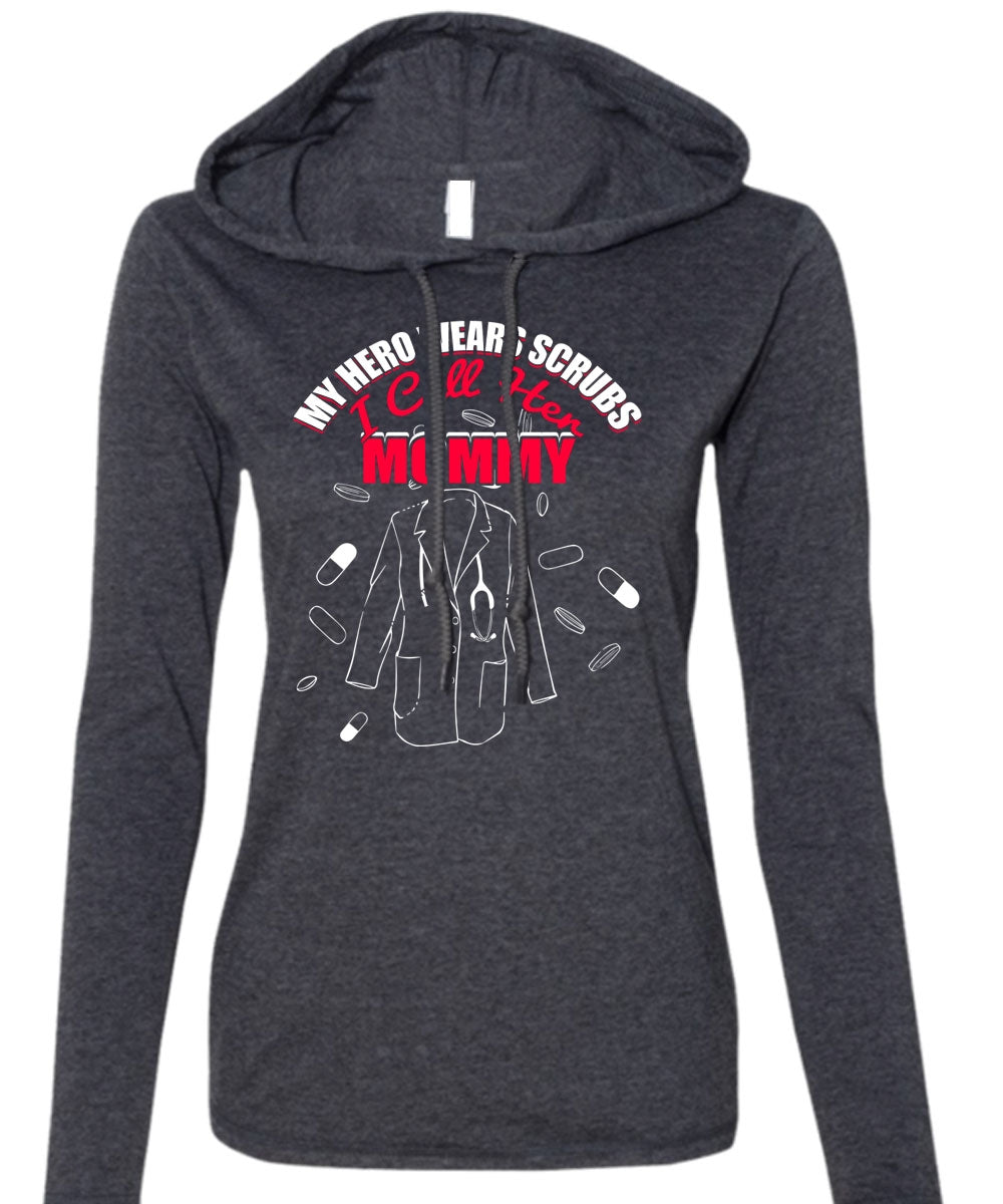 I Call Her Mommy T Shirt, Wears Scrubs T Shirt (Anvil Ladies Ringspun Hooded)