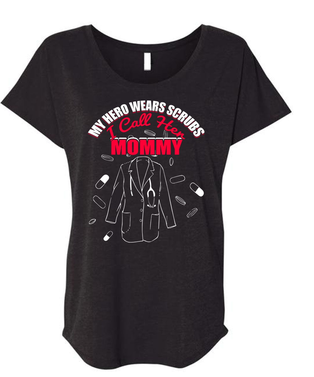 I Call Her Mommy T Shirt, Wears Scrubs T Shirt, Cool Shirt (Ladies' Triblend Dolman Sleeve)