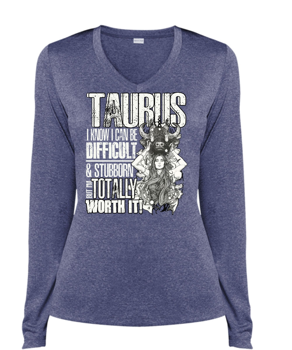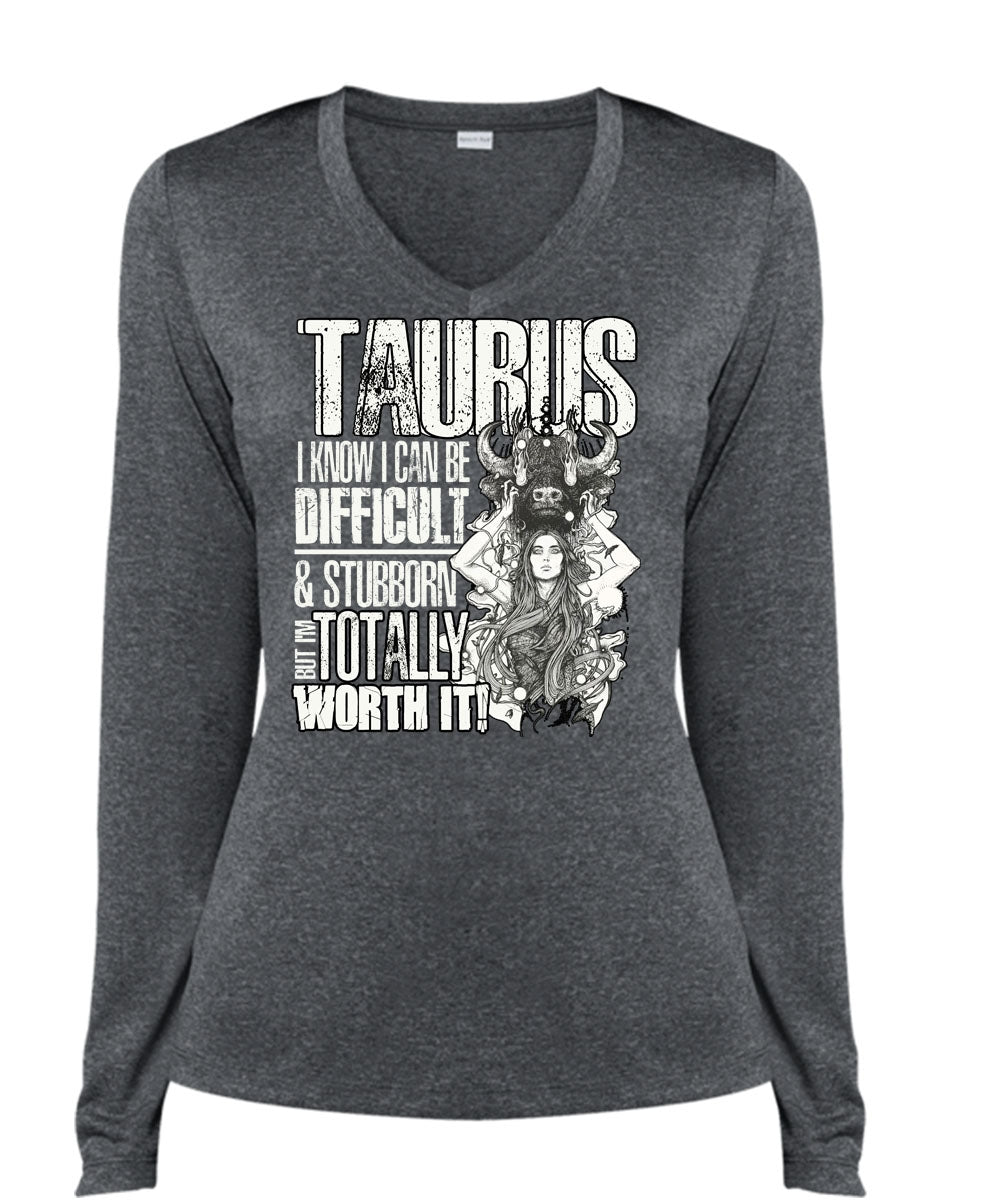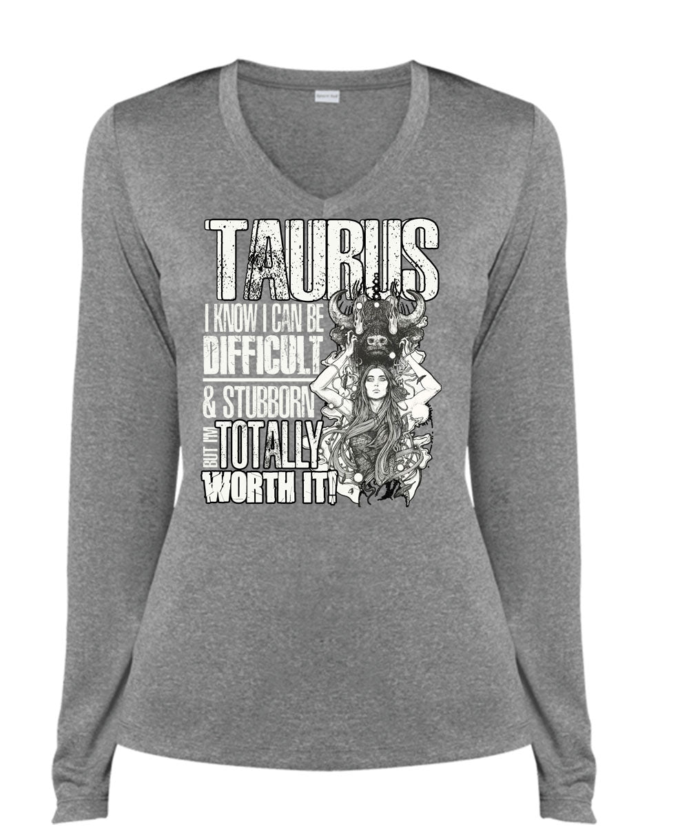 I Can Be Difficult T Shirt, Being A Taurus T Shirt, Cool Shirt (Ladies LS Heather V-Neck)