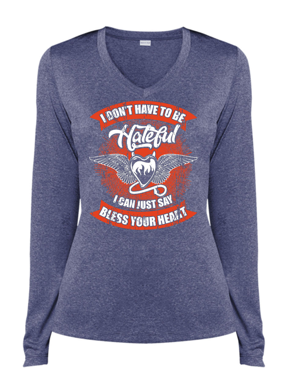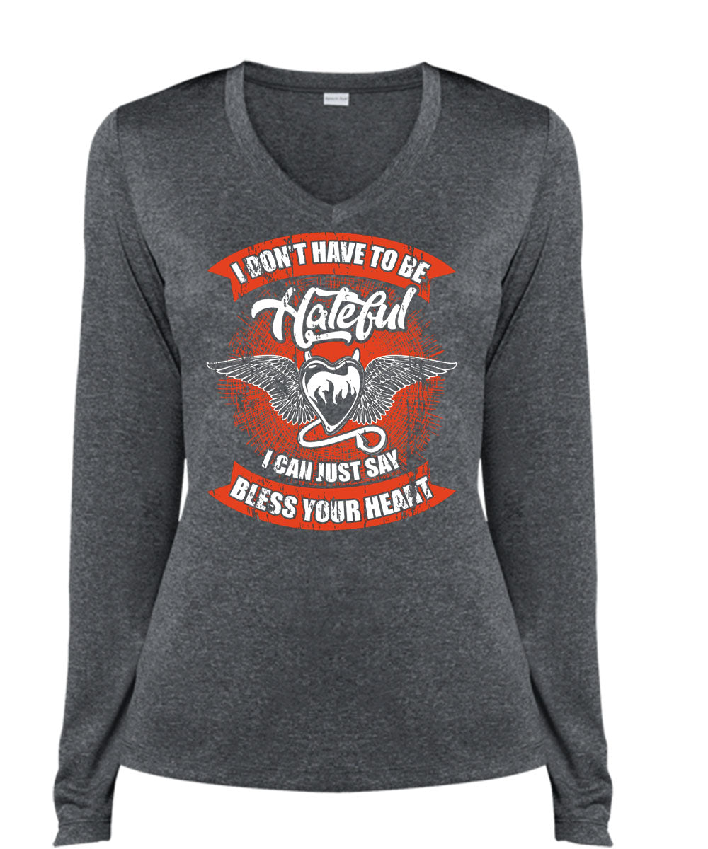 I Can Just Say Bless Your Heart T Shirt, To Be Hateful T Shirt, Cool Shirt (Ladies LS Heather V-Neck)