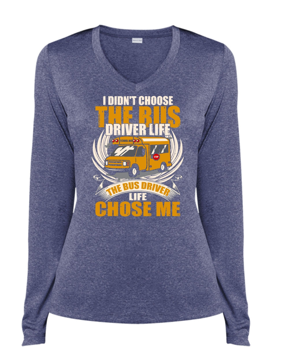 I Didn't Choose The Bus Driver T Shirt, Being A Bus Driver T Shirt, Cool Shirt (Ladies LS Heather V-Neck)