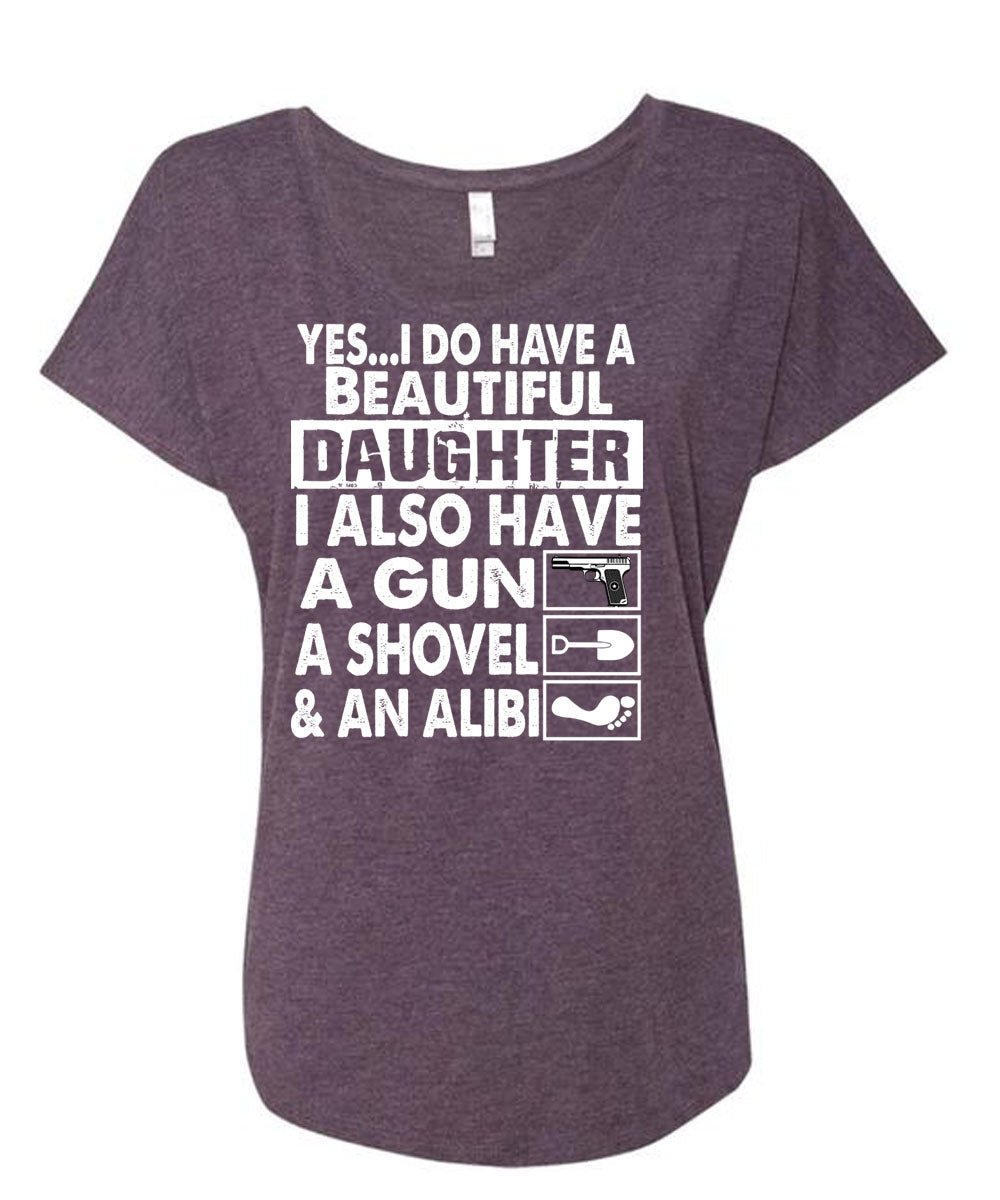 I Do Have A Beautiful Daughter T Shirt, Have A Gun T Shirt, Cool Shirt (Ladies' Triblend Dolman Sleeve)
