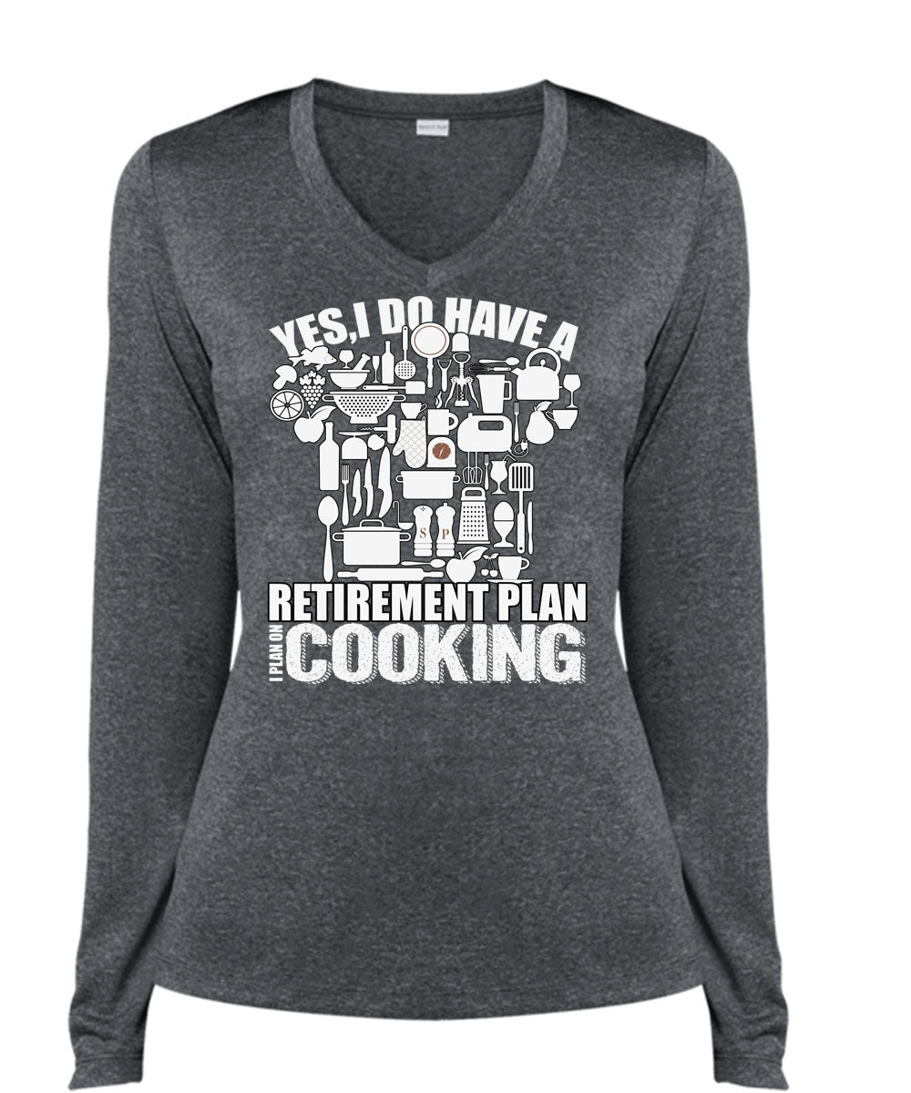 I Do Have A Retirement Plan T Shirt, I Plan On Cooking T Shirt, Cool Shirt (Ladies LS Heather V-Neck)