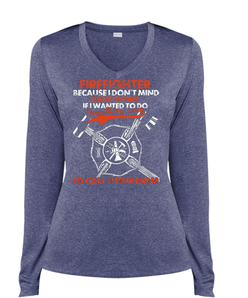 I Don't Mind Hard Work T Shirt, I'd Call Your Mom T Shirt, Cool Shirt (Ladies LS Heather V-Neck)