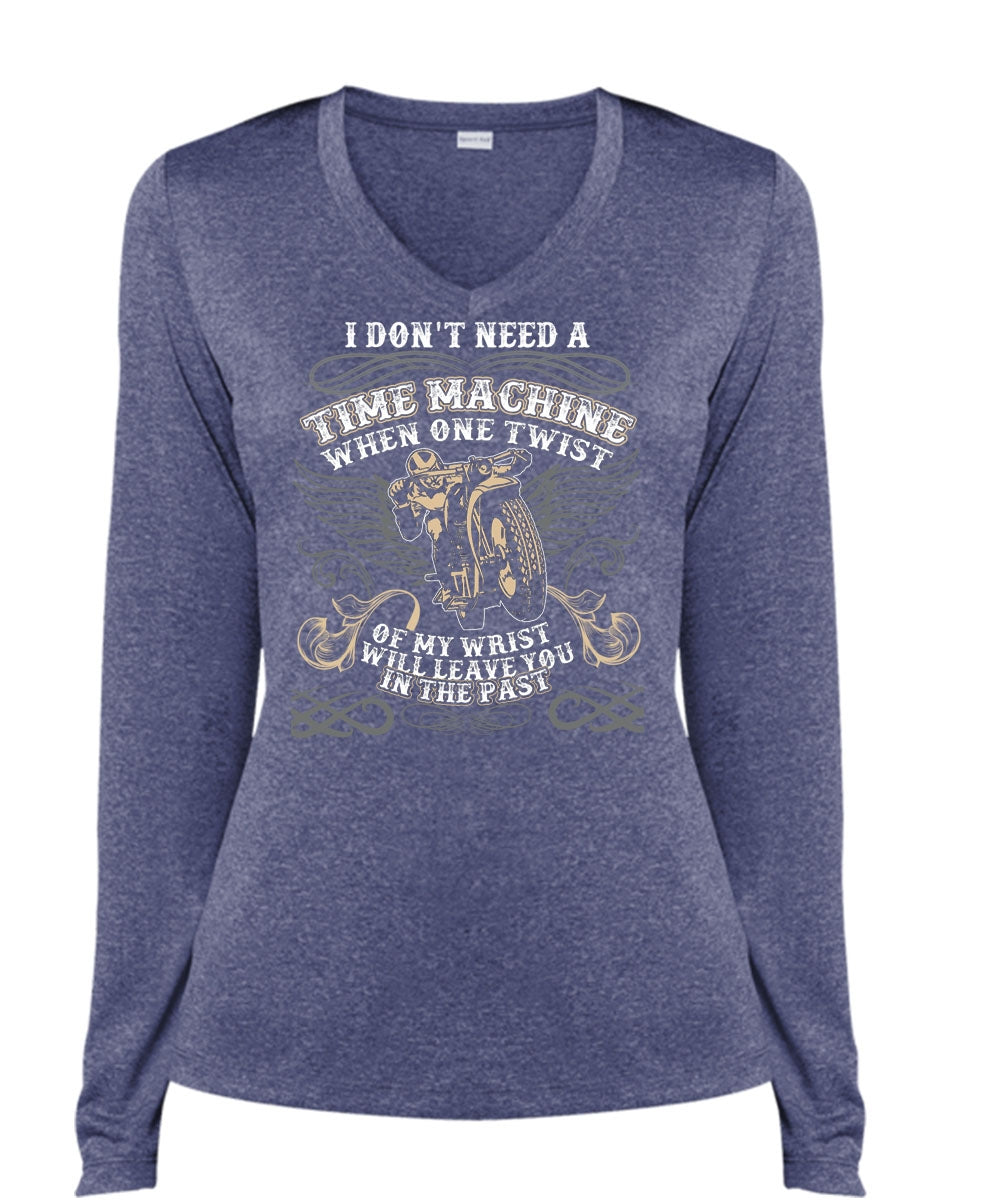 I Don't Need A Time Machine T Shirt, Being A Biker T Shirt, Cool Shirt (Ladies LS Heather V-Neck)