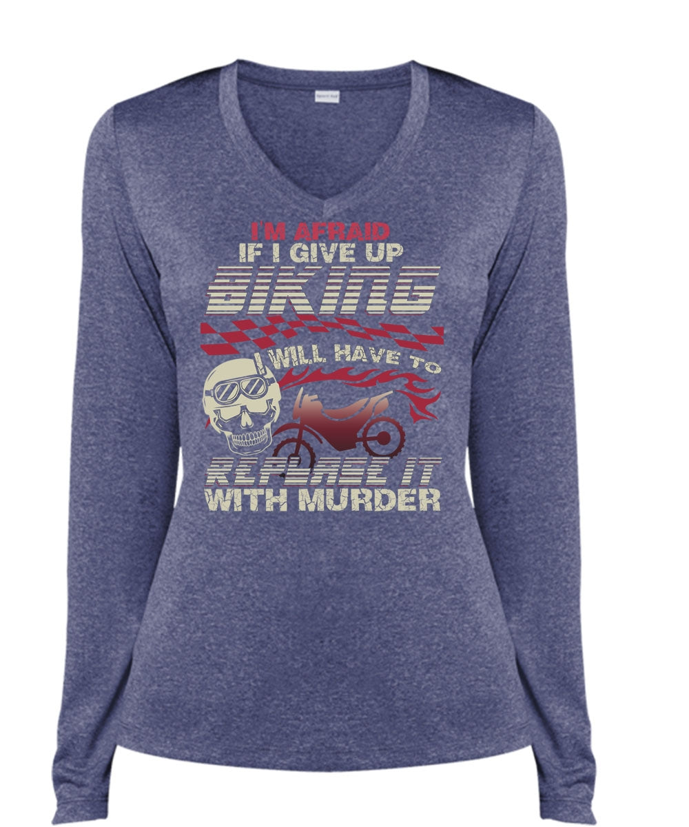 I Give Up Biking T Shirt, Being A Biker T Shirt, Cool Shirt (Ladies LS Heather V-Neck)