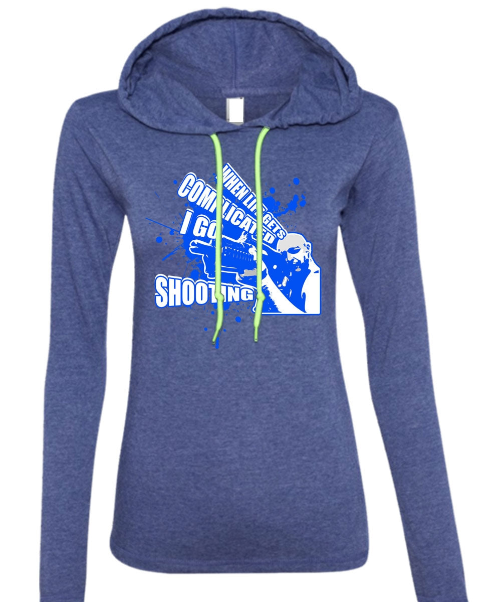 I Go Shooting T Shirt, Being A Hunter T Shirt (Anvil Ladies Ringspun Hooded)