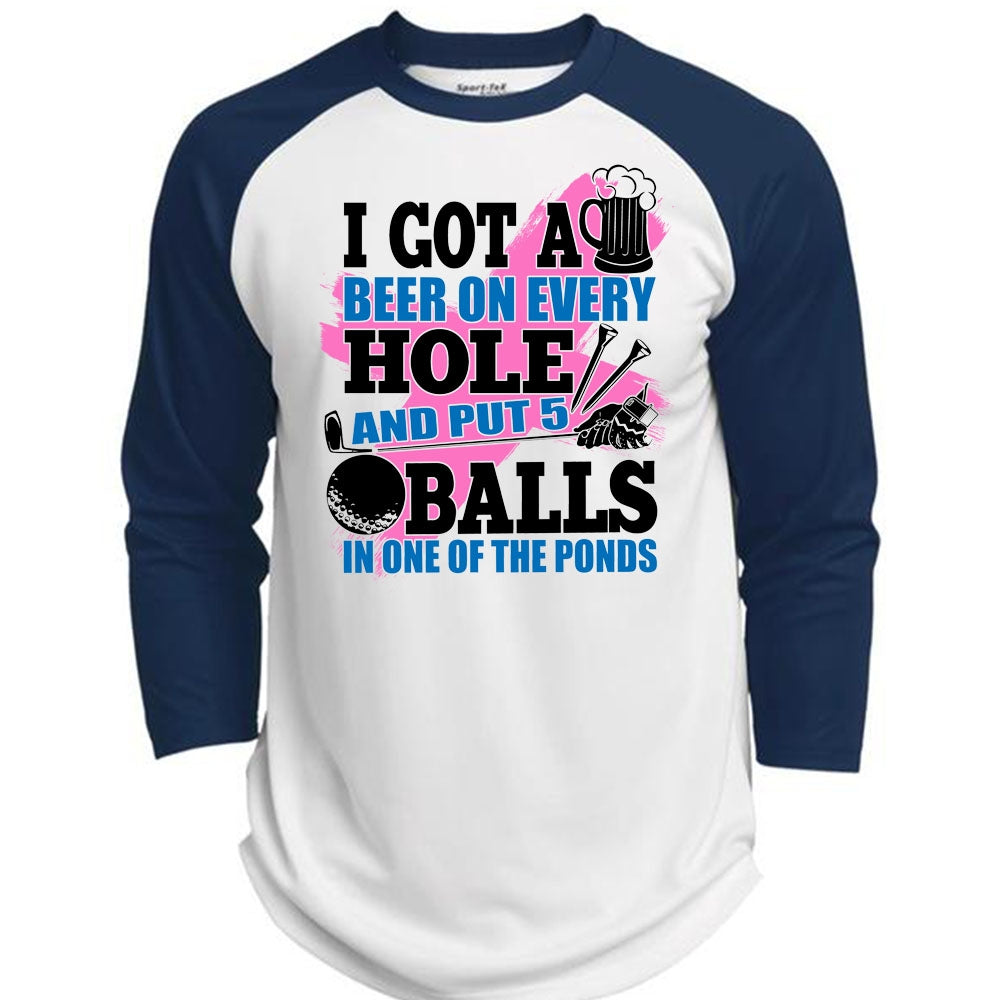 I Got A Beer On Every Hole T Shirt, I Love Golf T Shirt, Awesome T-Shirts (Polyester Game Baseball Jersey)