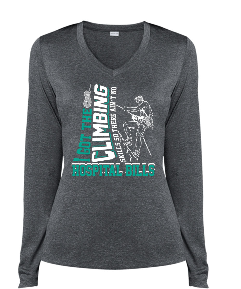 I Got The Climbing T Shirt, Hospital Bills T Shirt, Cool Shirt (Ladies LS Heather V-Neck)