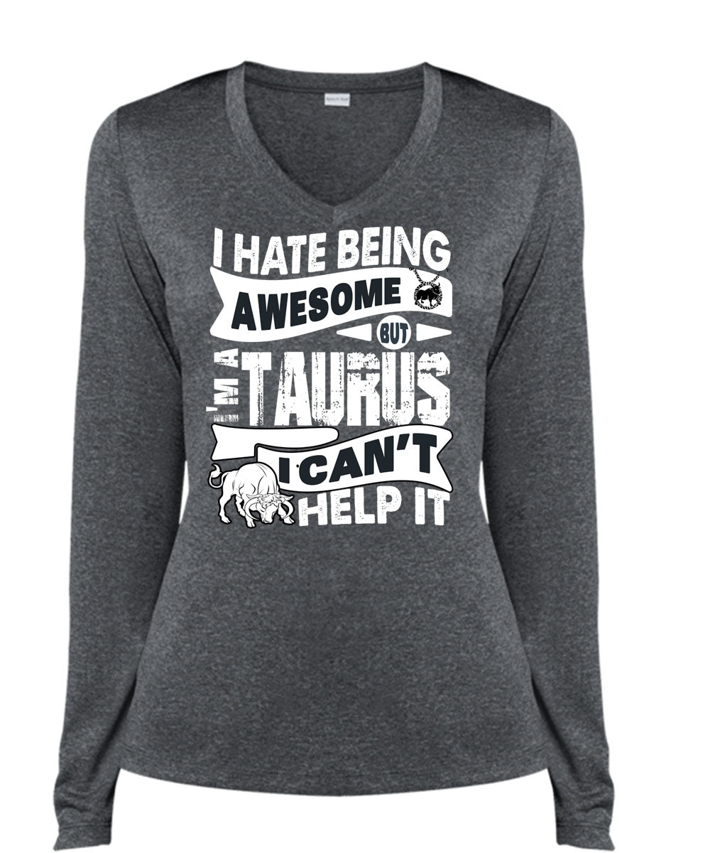 I Hate Being Awesome T Shirt, I'm A Taurus T Shirt, Cool Shirt (Ladies LS Heather V-Neck)