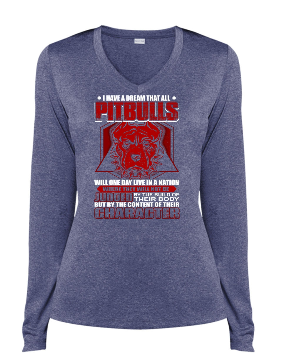 I Have A Dream That All Pit Bulls T Shirt, My Pets T Shirt, Cool Shirt (Ladies LS Heather V-Neck)