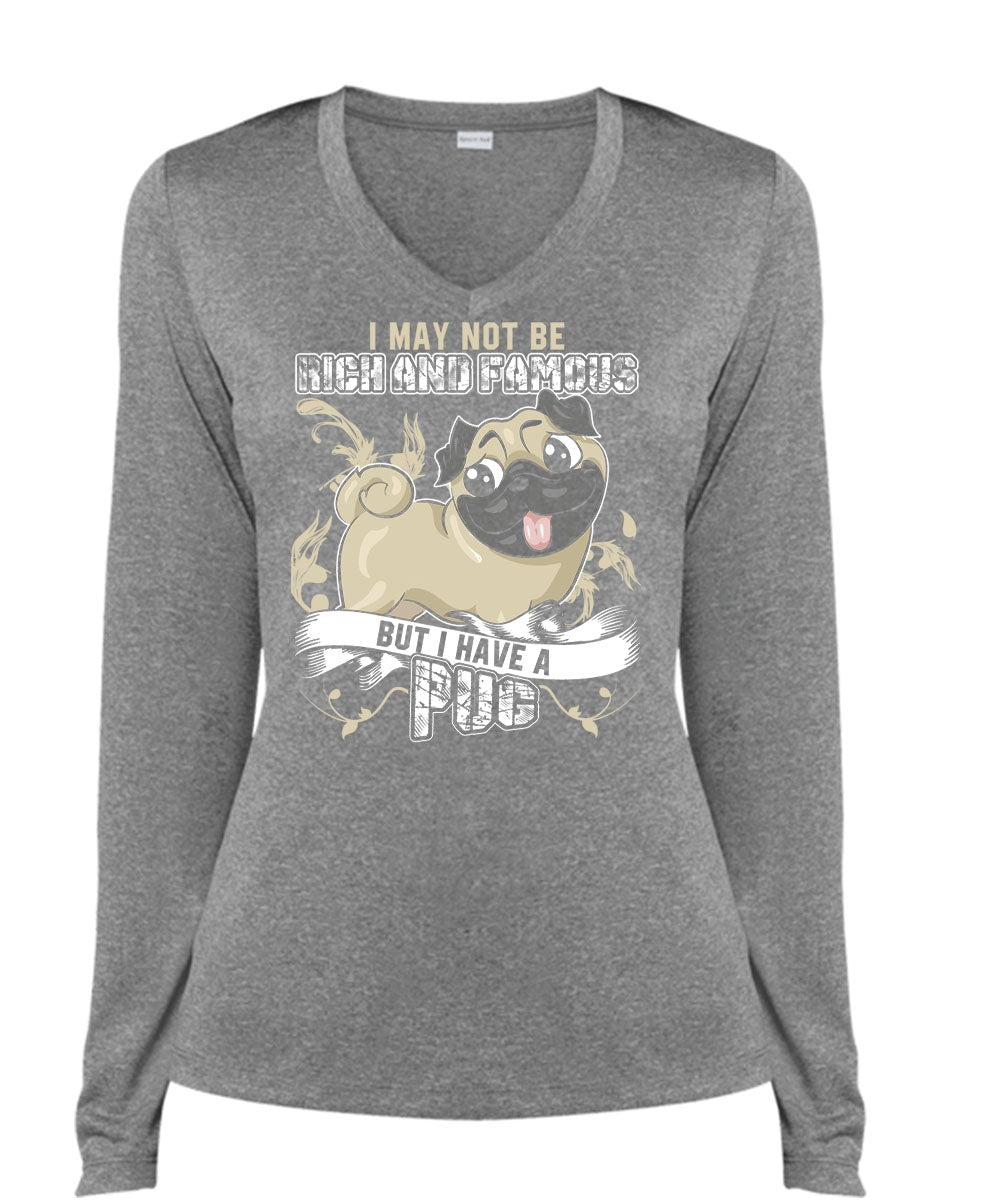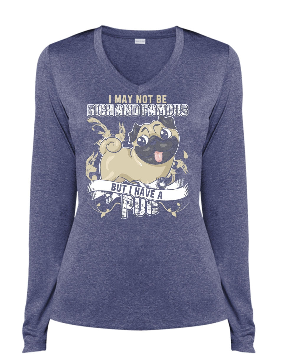 I Have A Pug T Shirt, Rich And Famous T Shirt, Cool Shirt (Ladies LS Heather V-Neck)