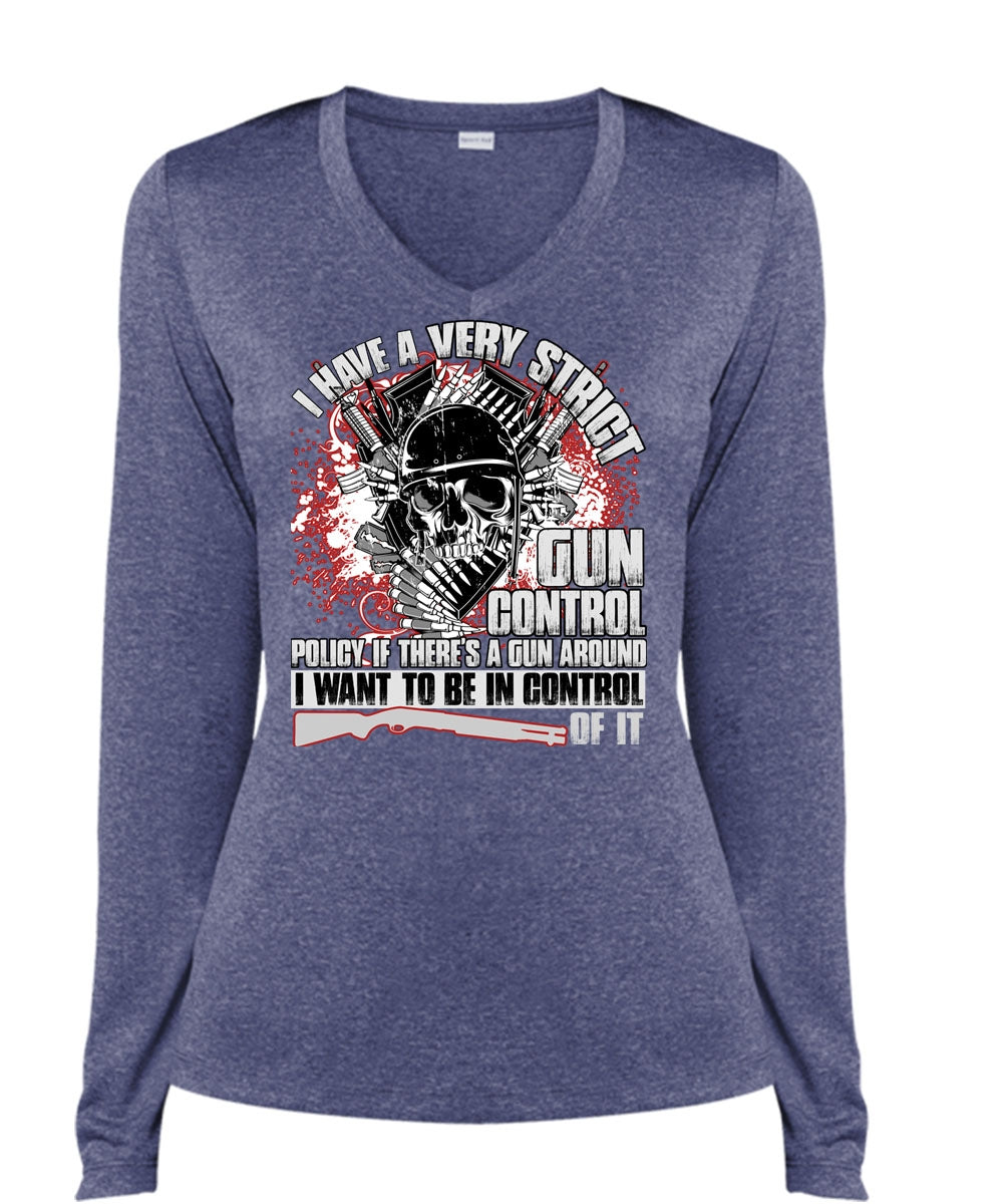 I Have A Very Strict Gun Control T Shirt, Being A Veteran T Shirt, Cool Shirt (Ladies LS Heather V-Neck)