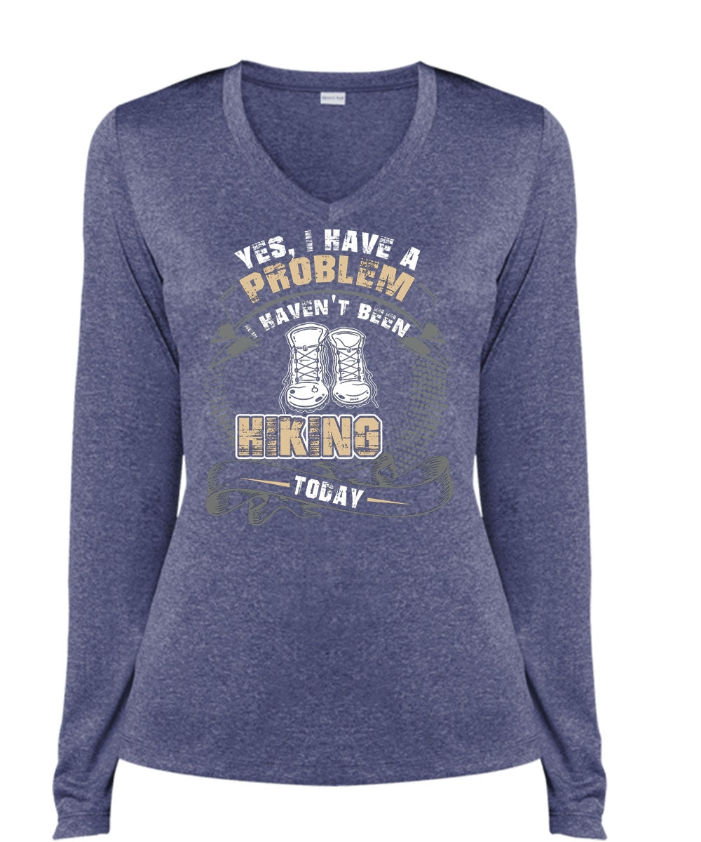 I Haven't Been Hiking Today T Shirt, Being A Hiker T Shirt, Cool Shirt (Ladies LS Heather V-Neck)