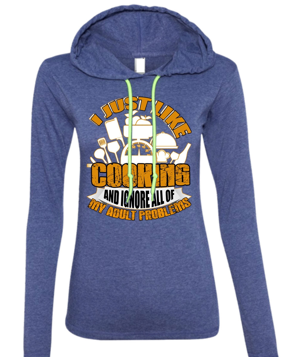 I Just Like Cooking T Shirt, Adult Problems T Shirt (Anvil Ladies Ringspun Hooded)