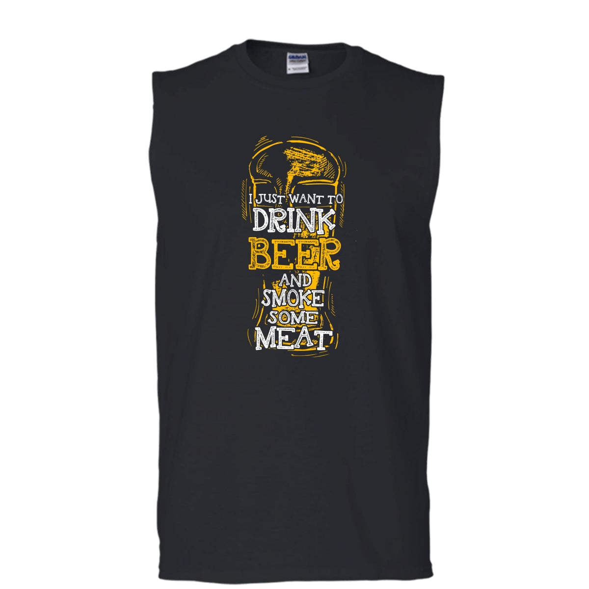 I Just Want To Drink Beer T Shirt, And Smoke Some Meat T Shirt, Cool T Shirt (Men's Cotton Sleeveless)