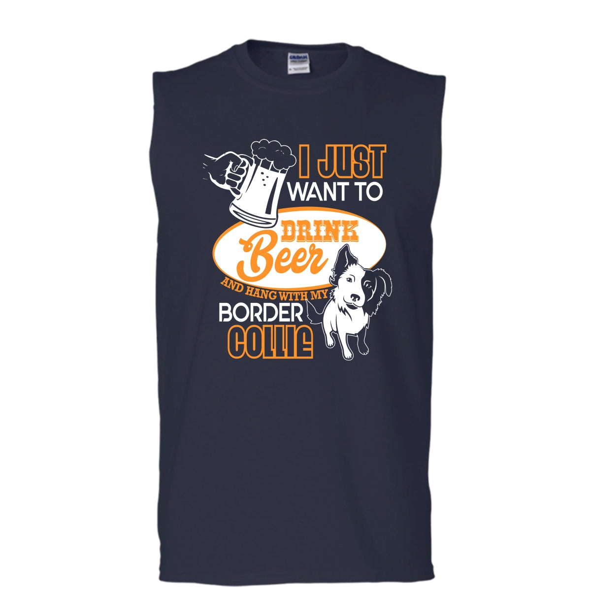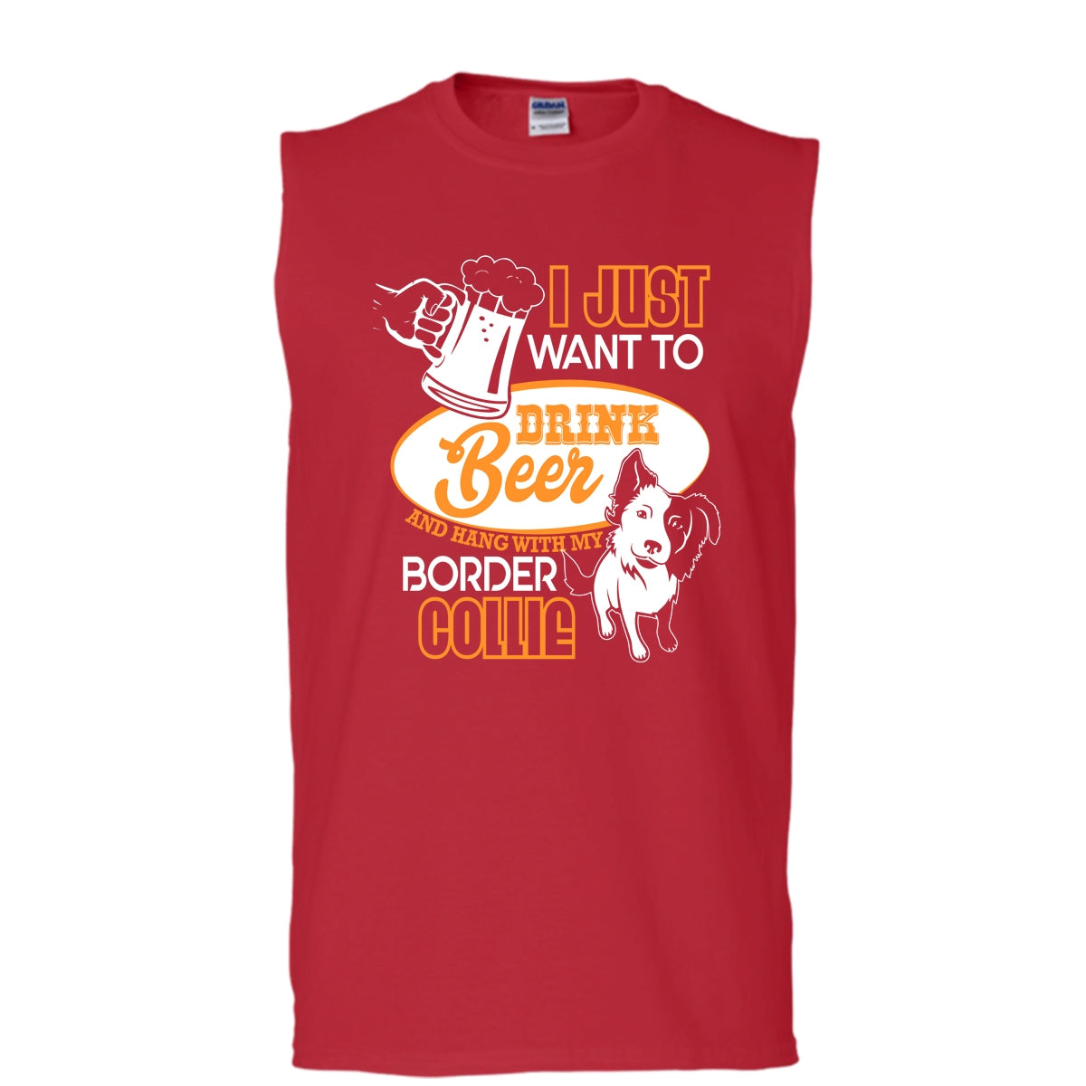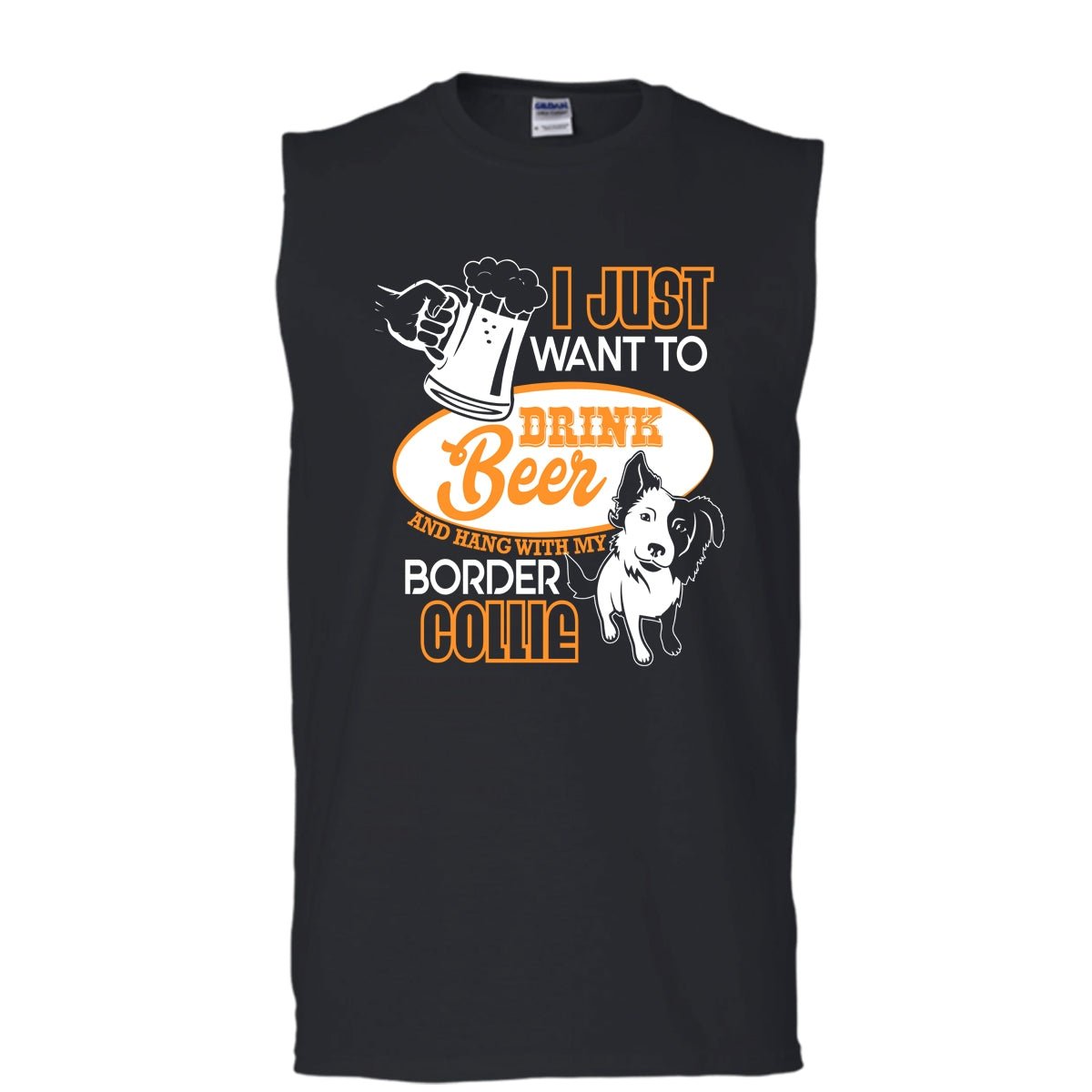 I Just Want To Drink Beer T Shirt, Hang With My Border Collie Tank Top (Men's Cotton Sleeveless)
