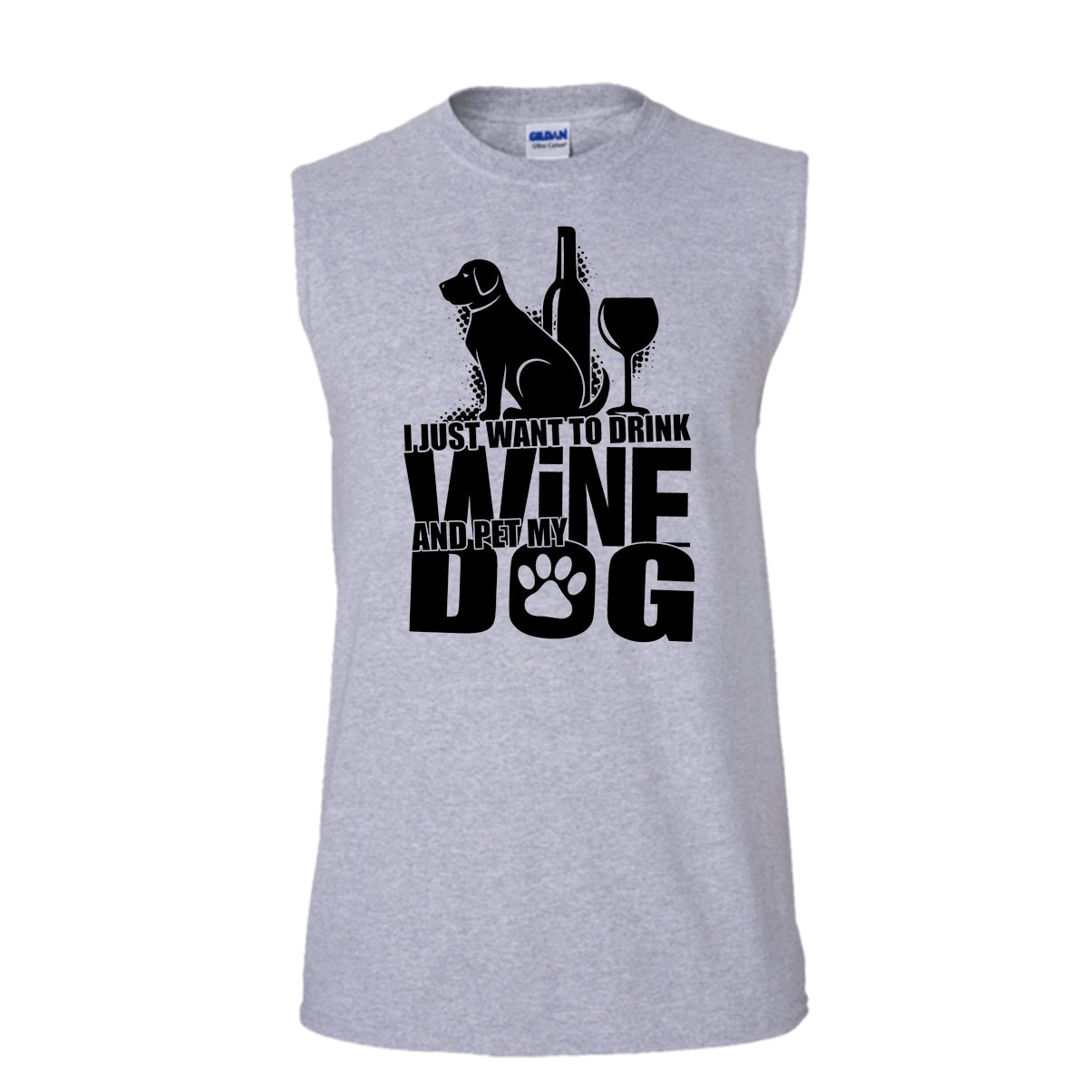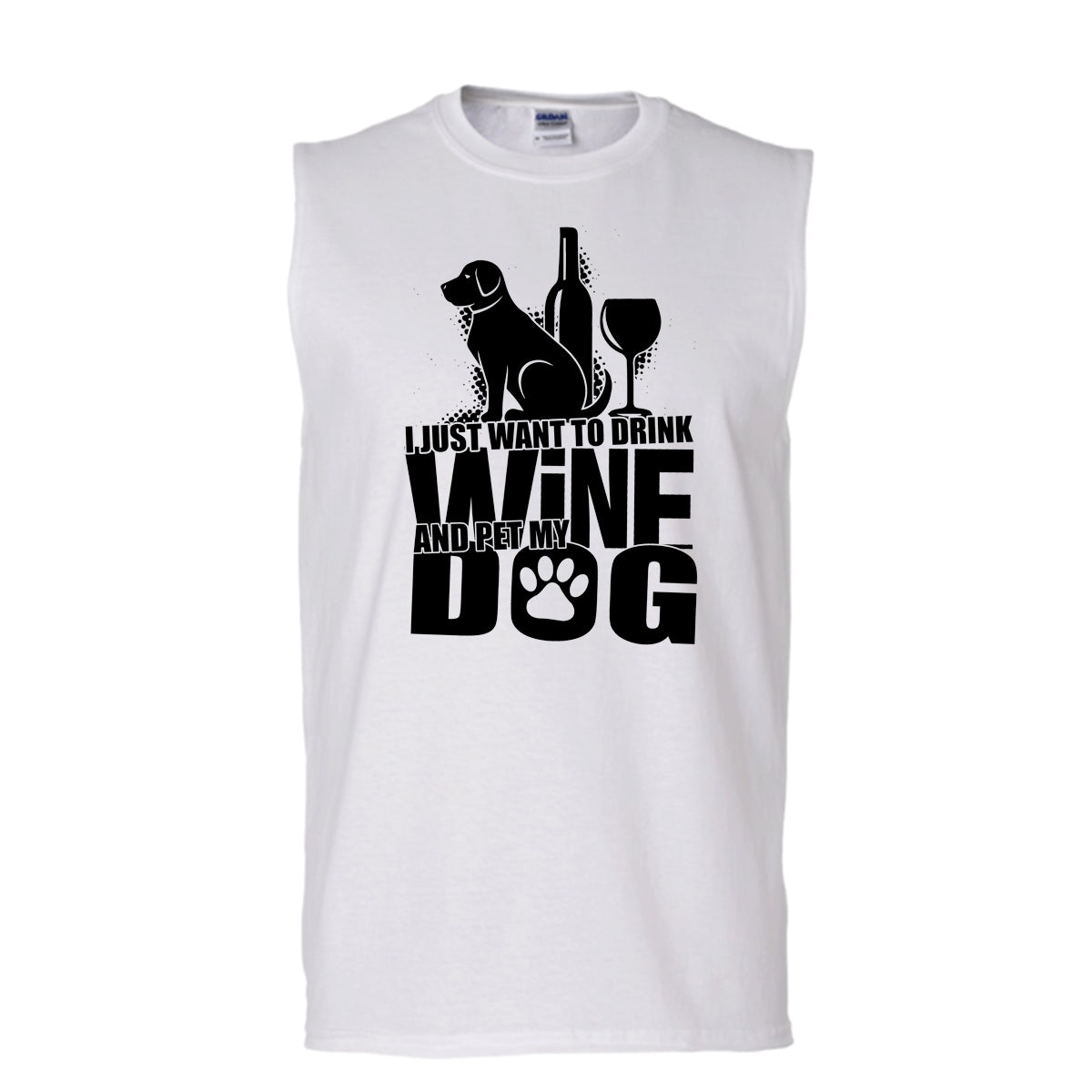 I Just Want To Drink Wine T Shirt, Coolest Dog Lover Tank Top (Men's Cotton Sleeveless)