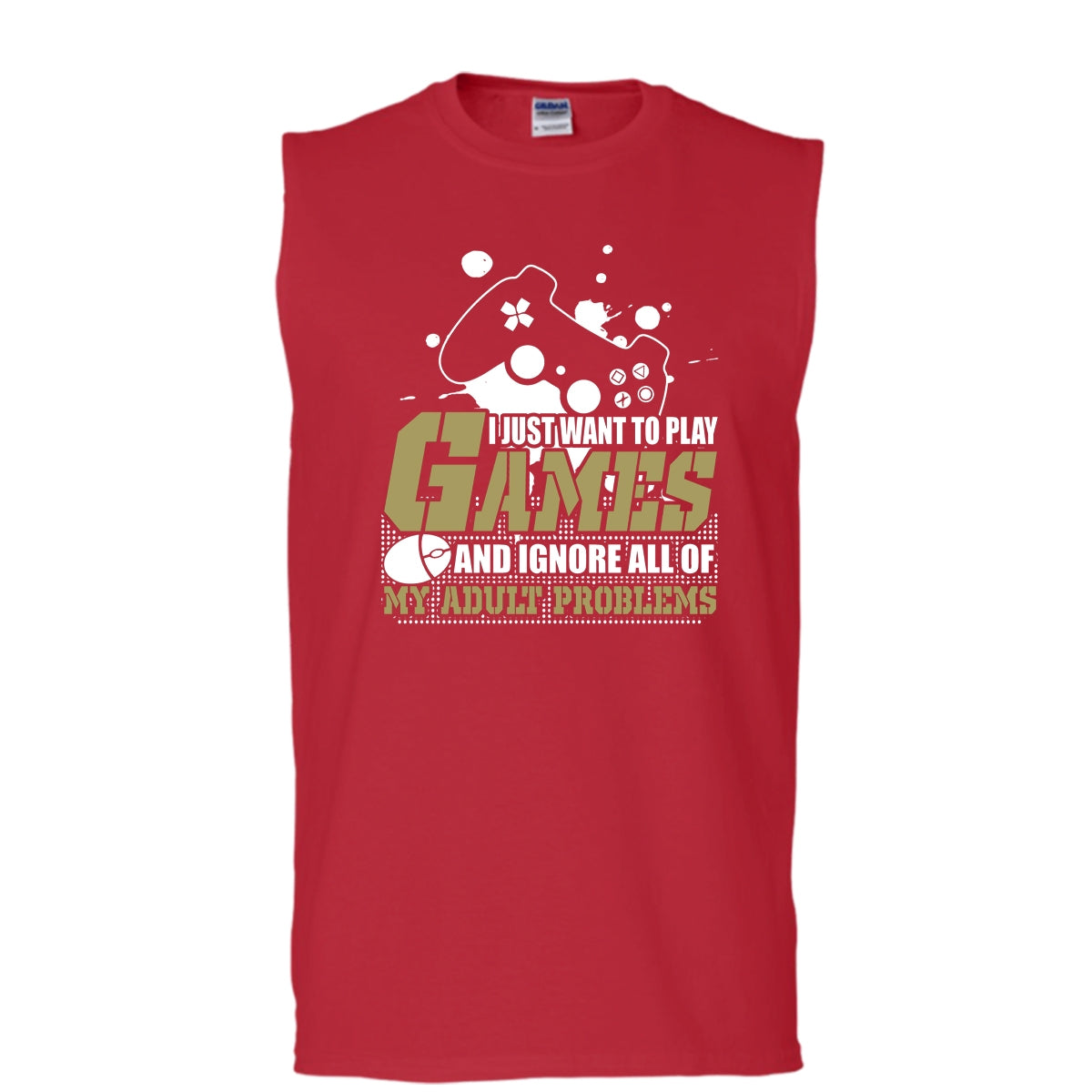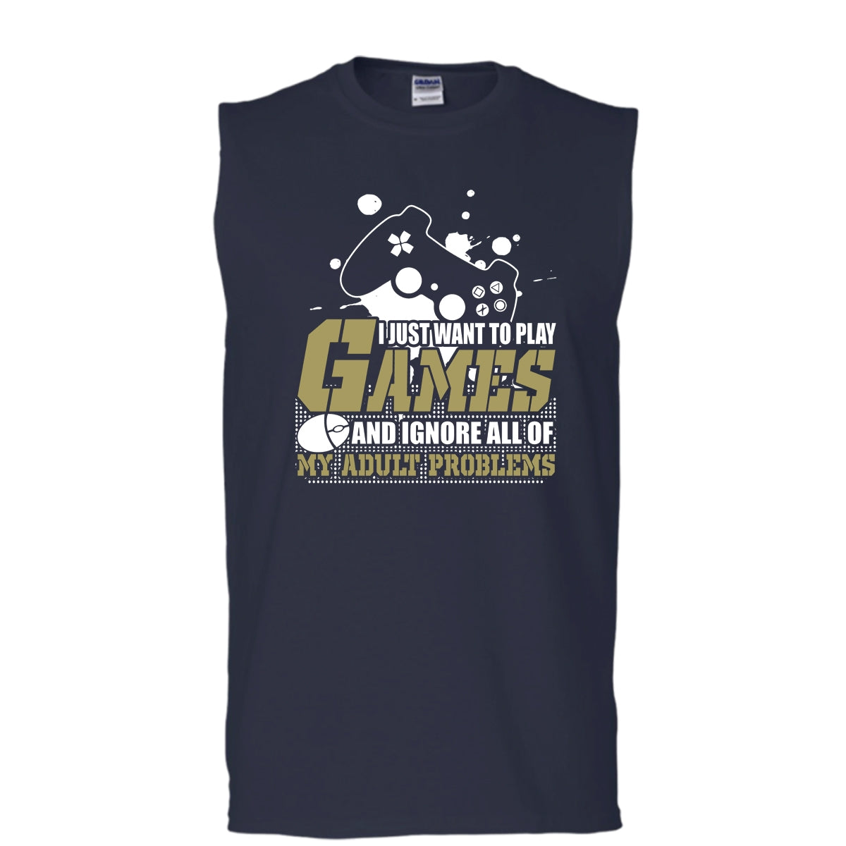 I Just Want To Play Games T Shirt, Ignore All Of My Adult Problems Tank Top (Men's Cotton Sleeveless)