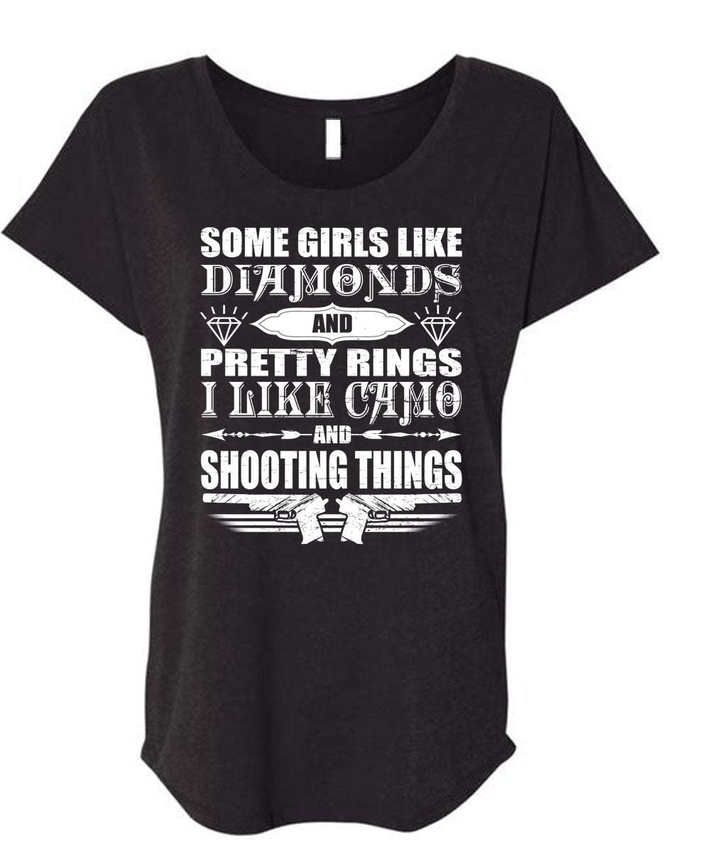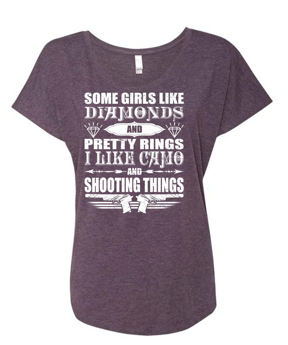 I Like Camo And Shooting Things T Shirt, Girls Like Diamonds T Shirt, Cool Shirt (Ladies' Triblend Dolman Sleeve)