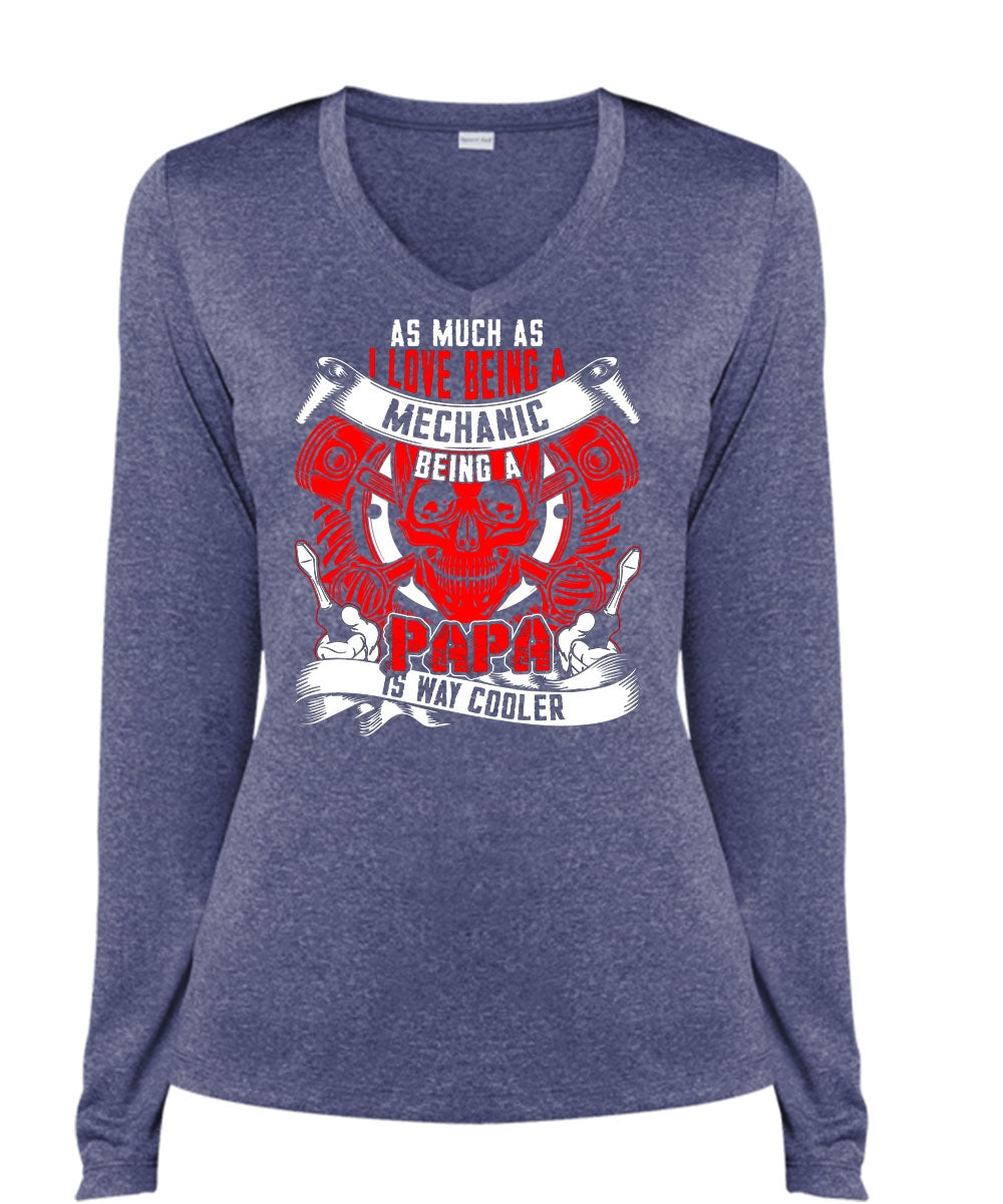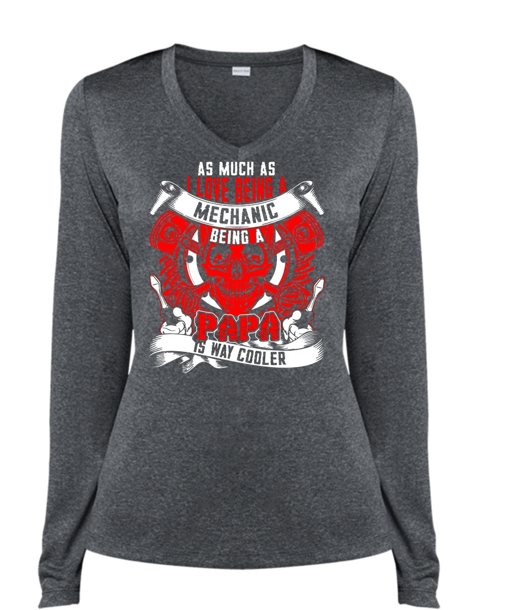 I Love Being A Mechanic T Shirt, Being A Papa T Shirt, Cool Shirt (Ladies LS Heather V-Neck)