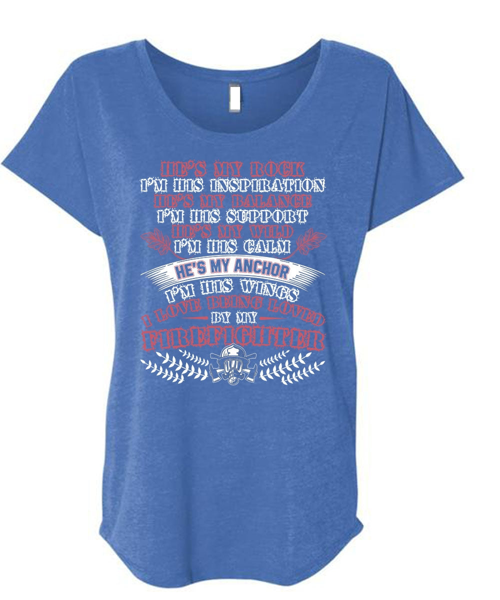 I Love Being Loved By My Firefighter T Shirt, He's My Wild T Shirt, Cool Shirt (Ladies' Triblend Dolman Sleeve)