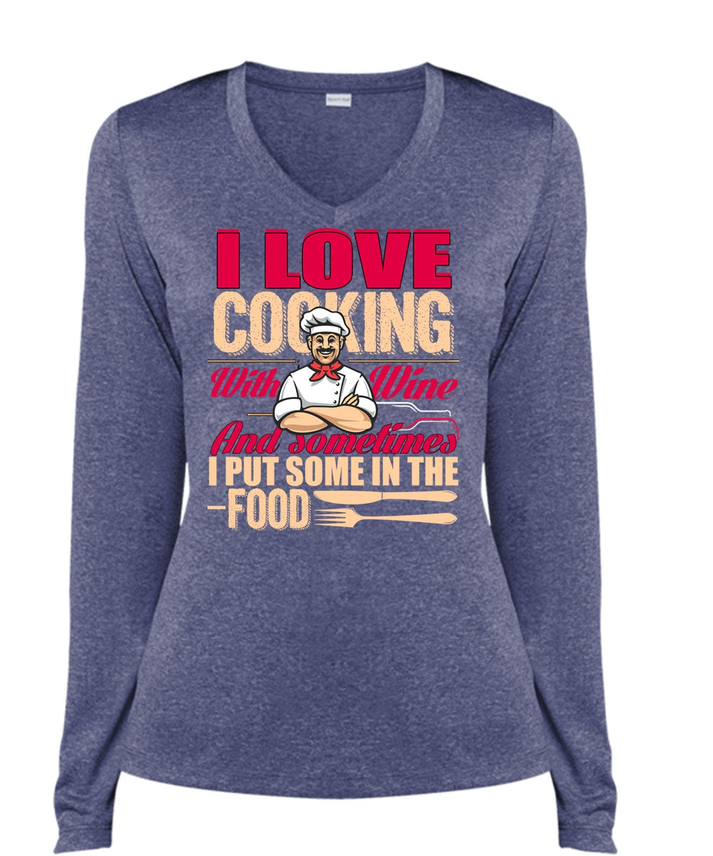 I Love Cooking T Shirt, I Put Some In The Food T Shirt, Cool Shirt (Ladies LS Heather V-Neck)