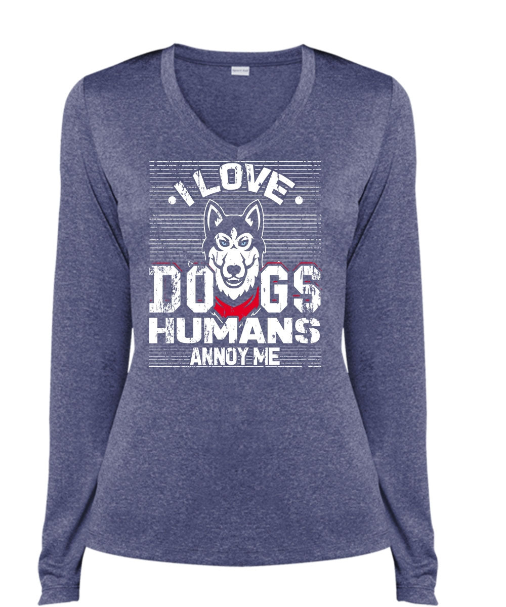 I Love Dogs Humans Annoy Me T Shirt, My Pets T Shirt, Cool Shirt (Ladies LS Heather V-Neck)