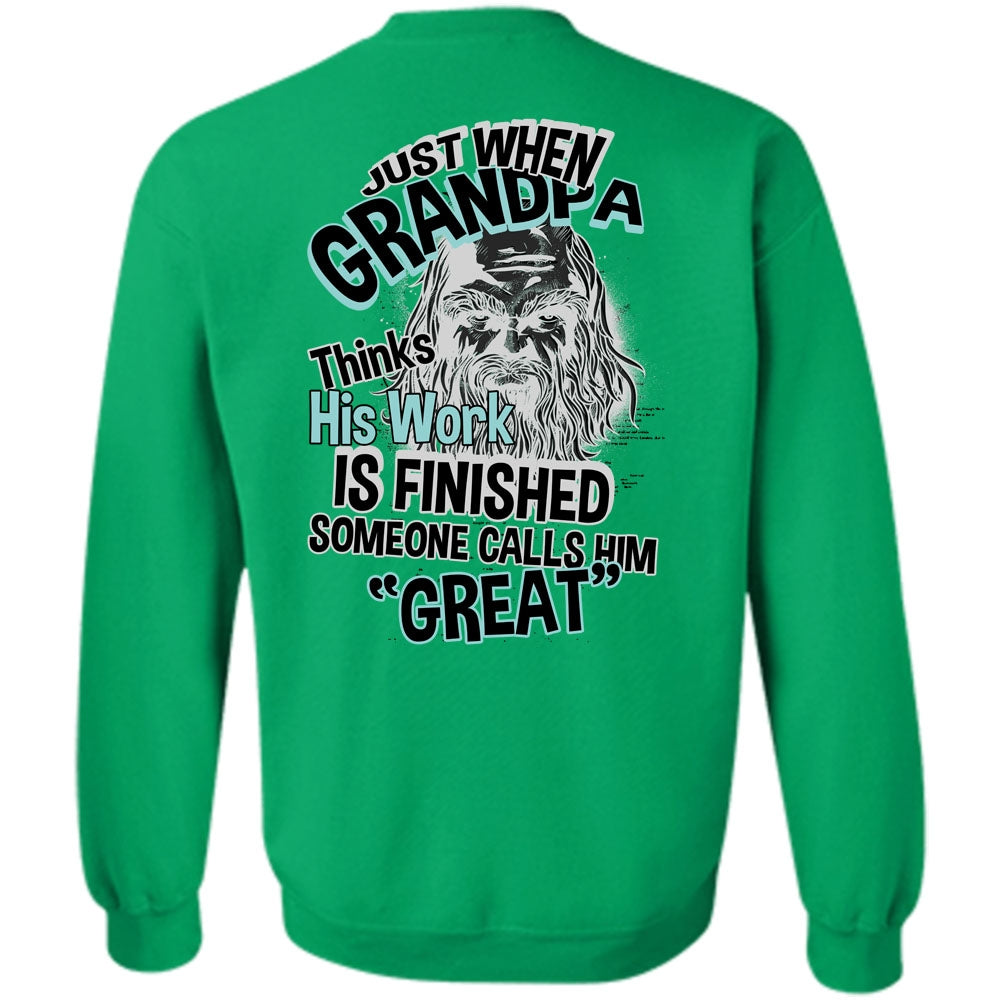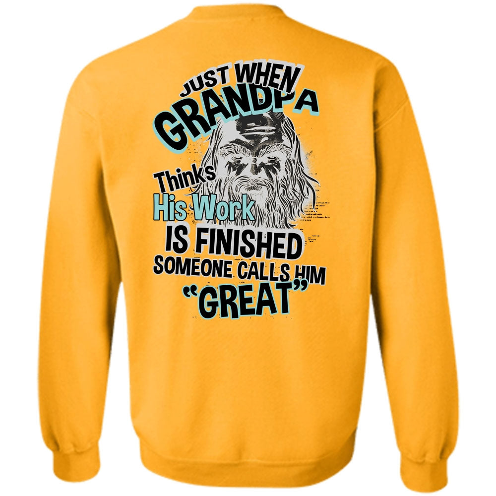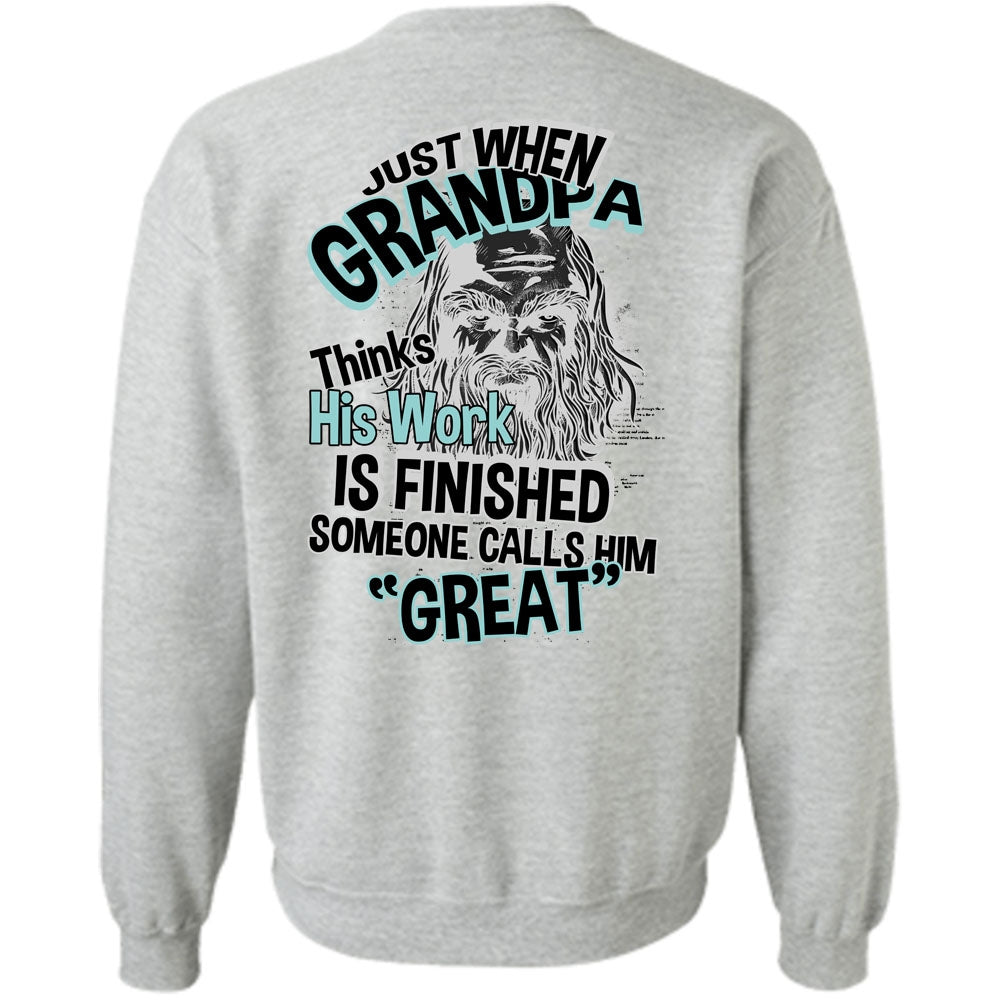 I Love Grandpa T Shirt, Grandpa Thinks His Work Is Finished Sweatshirt