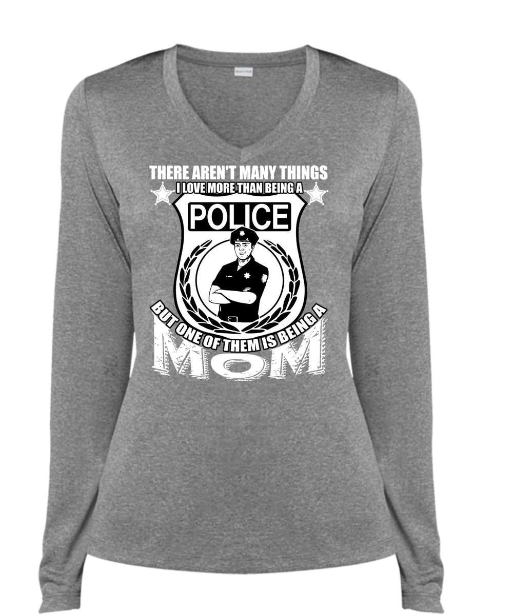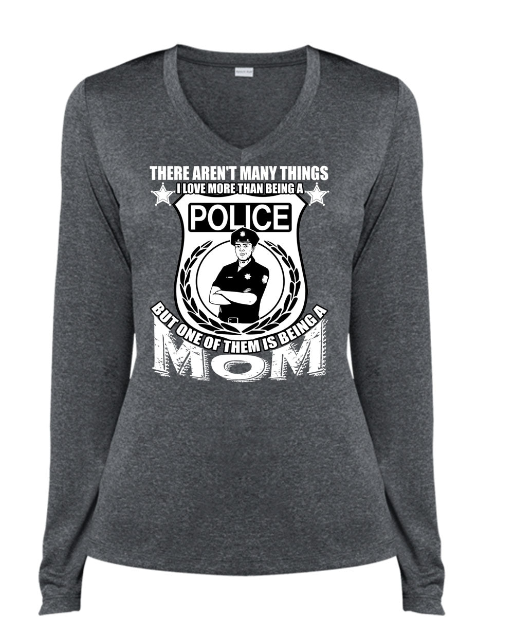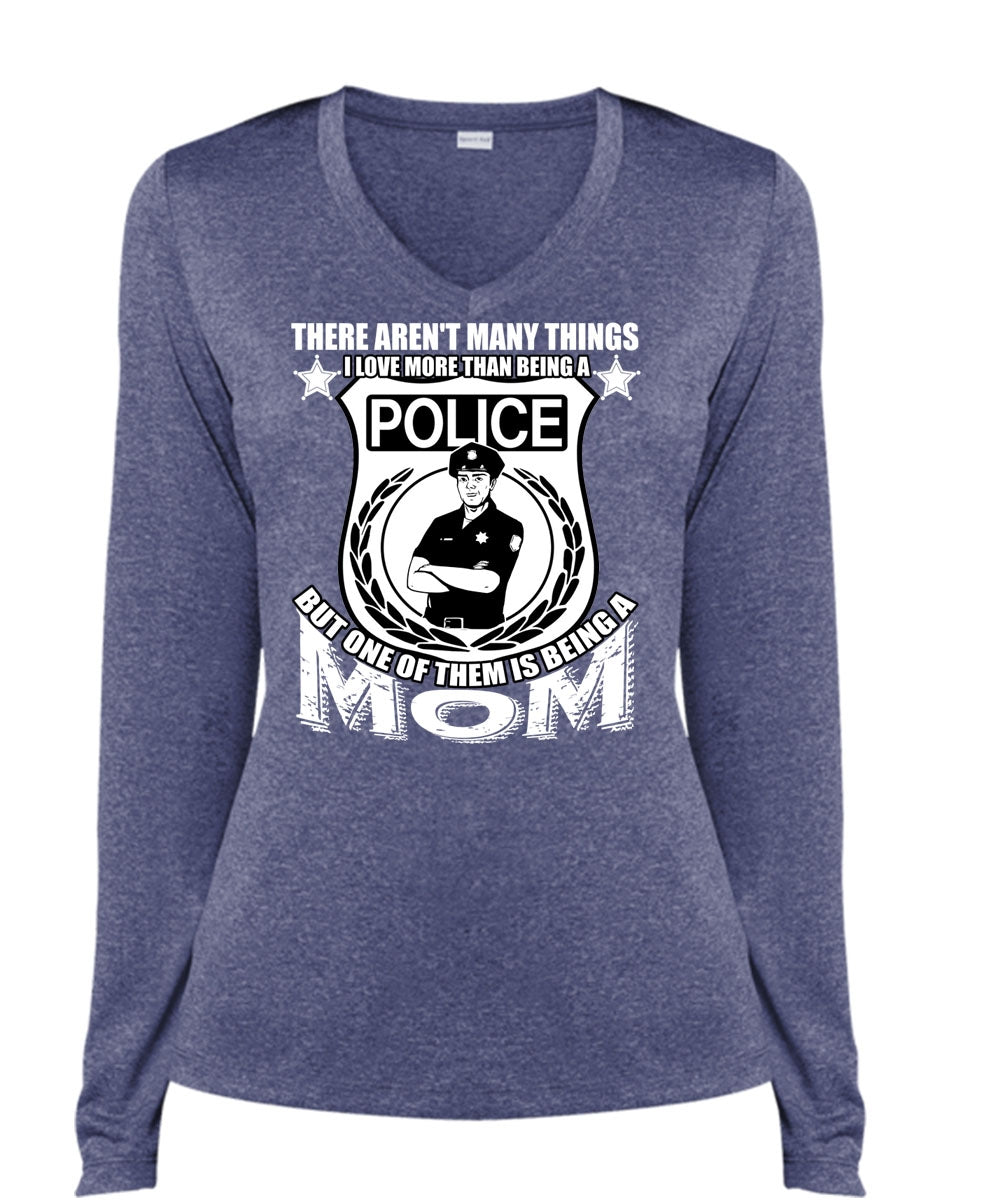 I Love More Than Being A Police T Shirt, Being A Mom T Shirt, Cool Shirt (Ladies LS Heather V-Neck)
