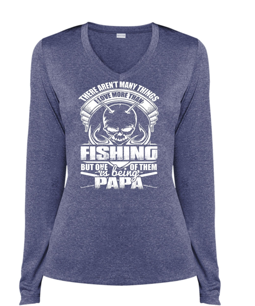 I Love More Than Fishing T Shirt, Being Papa T Shirt, Cool Shirt (Ladies LS Heather V-Neck)