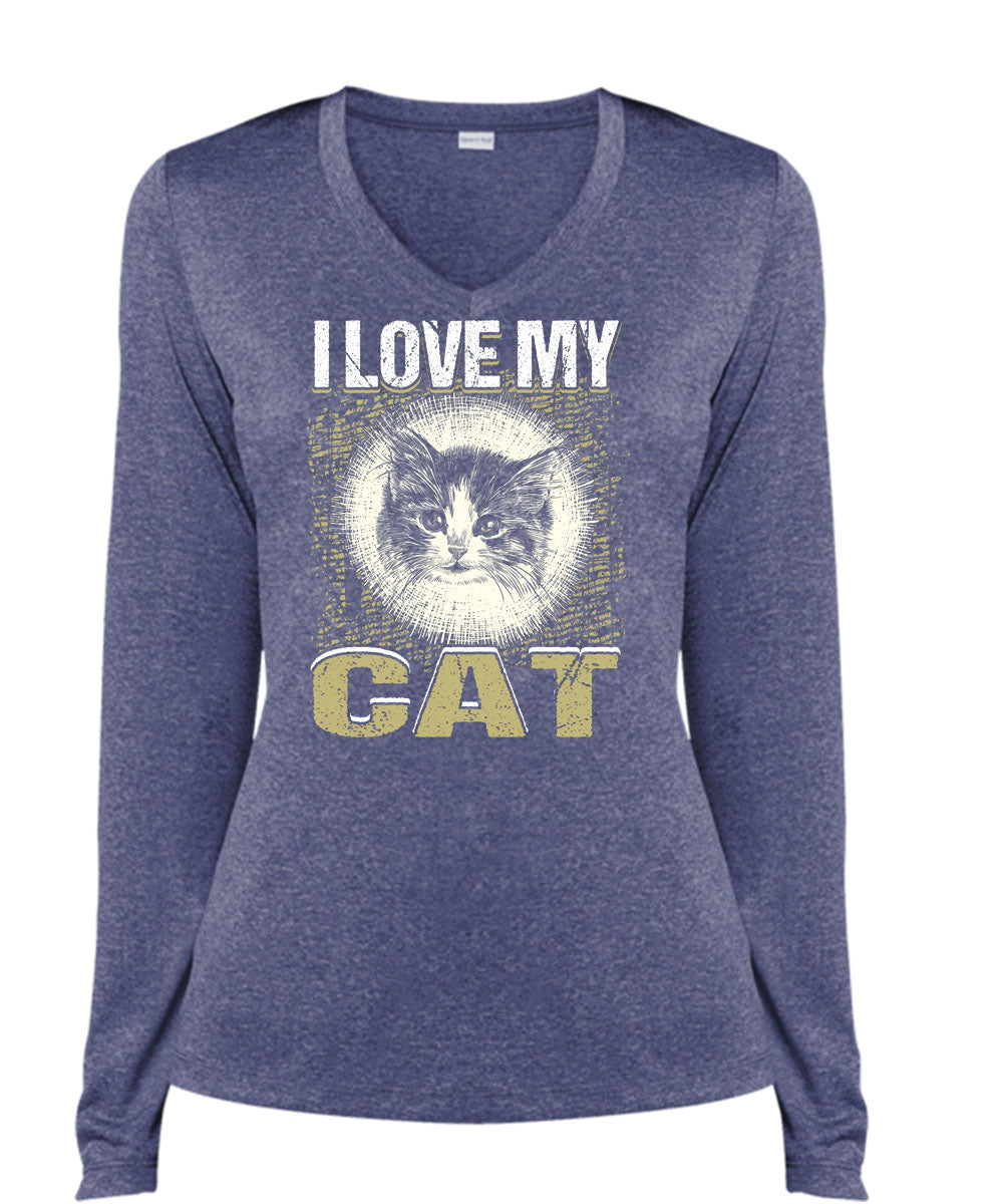 I Love My Cat T Shirt, My Pets T Shirt, Cool Shirt (Ladies LS Heather V-Neck)