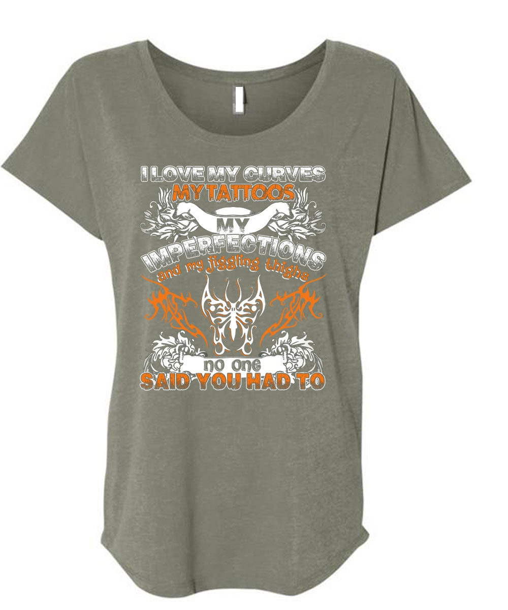 I Love My Curves My Tattoos T Shirt, My Favorite T Shirt, Cool Shirt (Ladies' Triblend Dolman Sleeve)