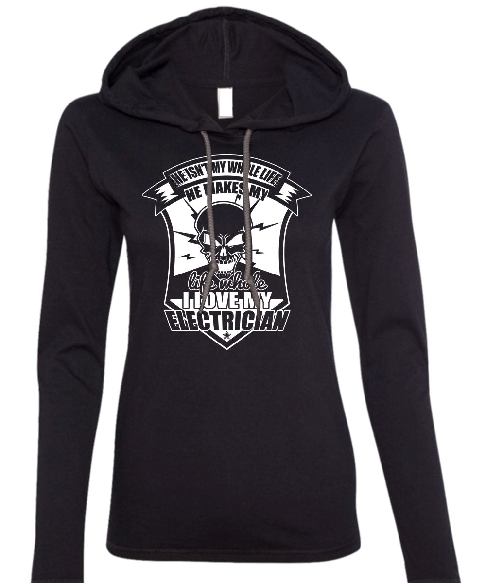 I Love My Electrician T Shirt, He Isn't My Whole Life T Shirt (Anvil Ladies Ringspun Hooded)
