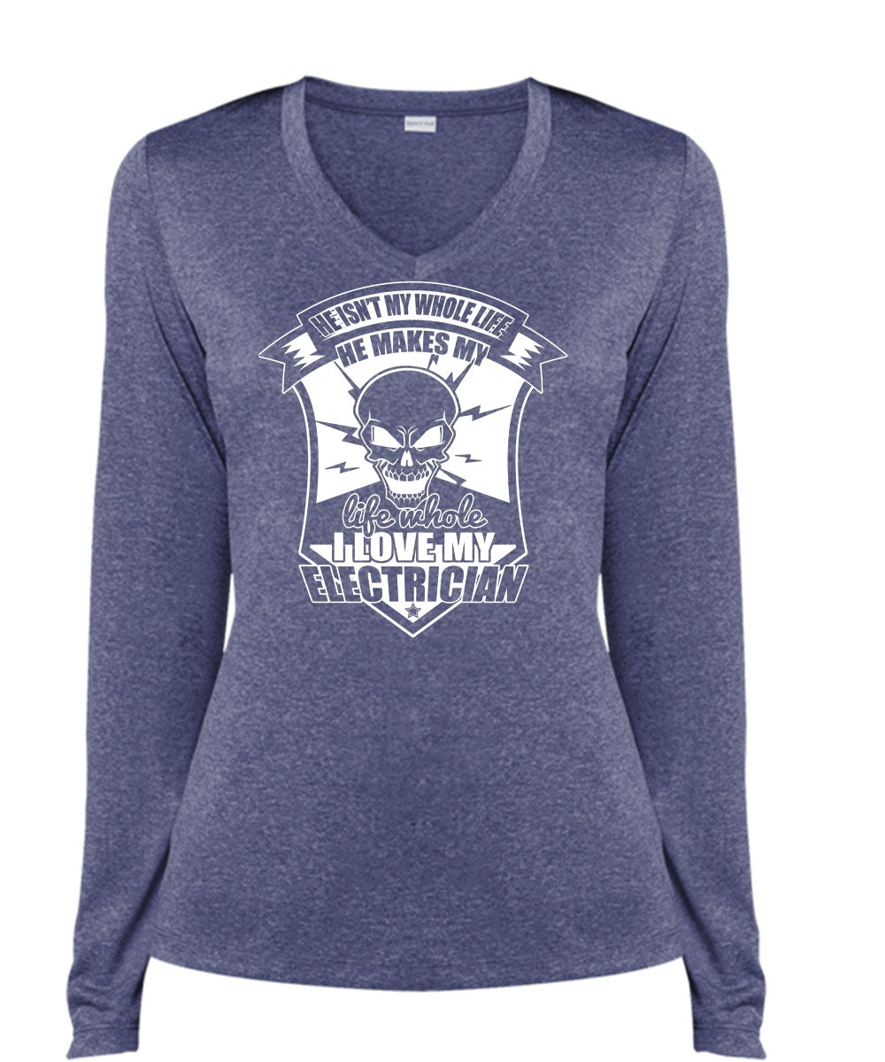 I Love My Electrician T Shirt, He Isn't My Whole Life T Shirt, Cool Shirt (Ladies LS Heather V-Neck)