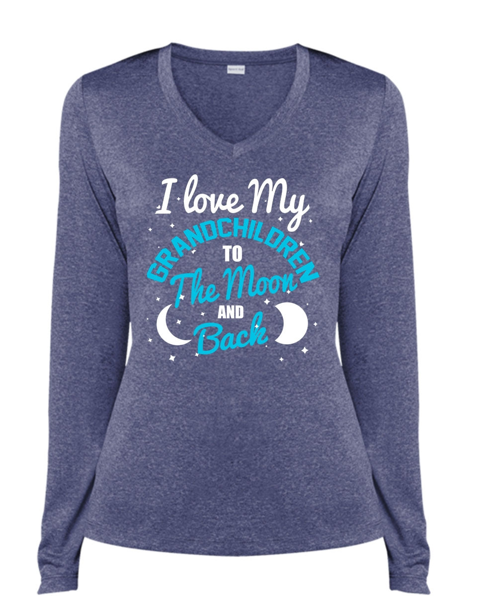 I Love My Grandchildren T Shirt, Moon And Back T Shirt, Cool Shirt (Ladies LS Heather V-Neck)