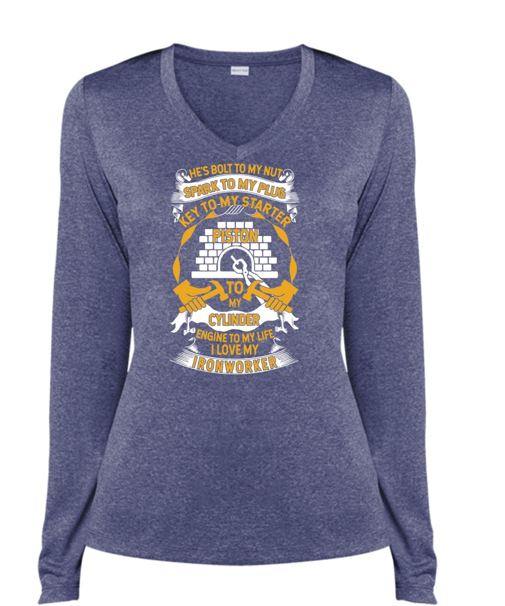 I Love My Ironworker T Shirt, Engine To My Life T Shirt, Cool Shirt (Ladies LS Heather V-Neck)