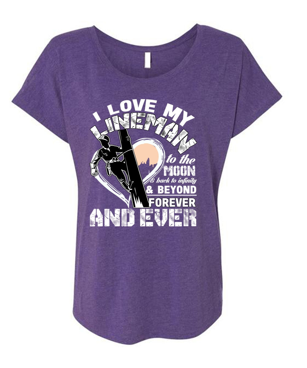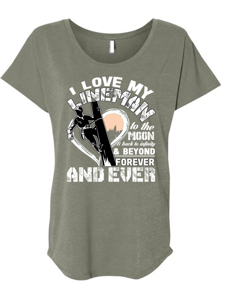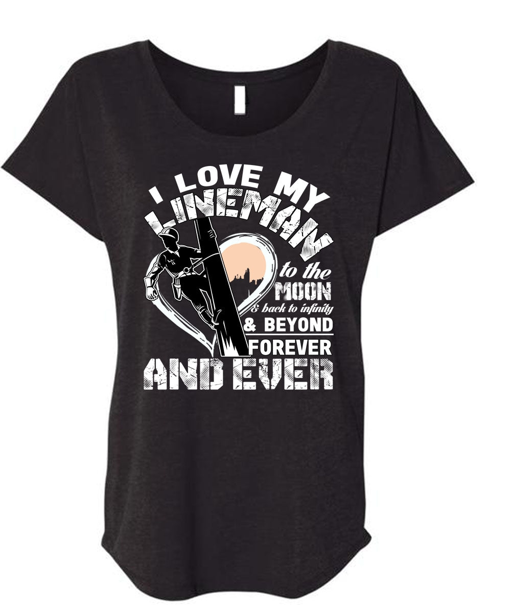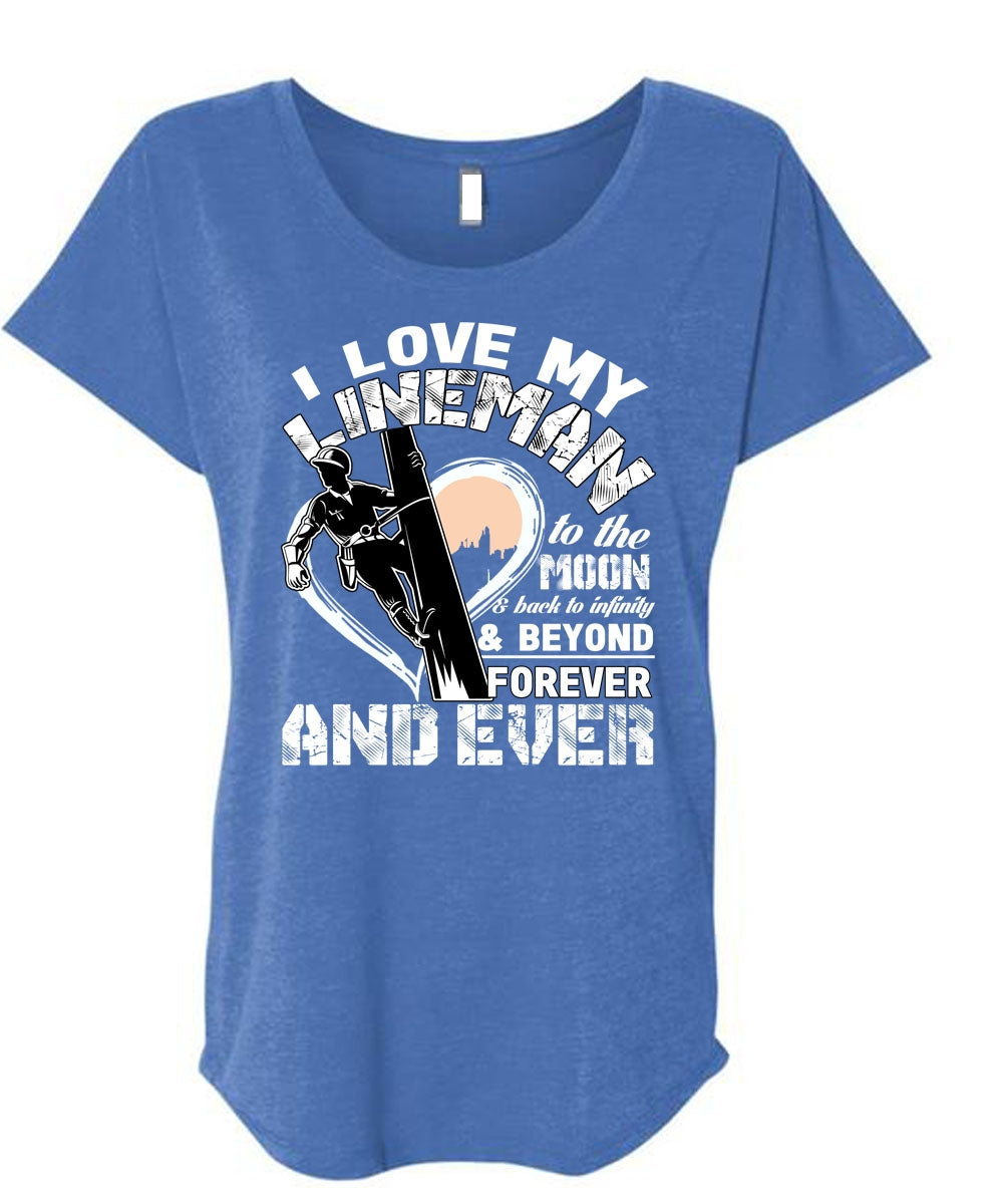 I Love My Lineman T Shirt, Moon And Back T Shirt, Cool Shirt (Ladies' Triblend Dolman Sleeve)
