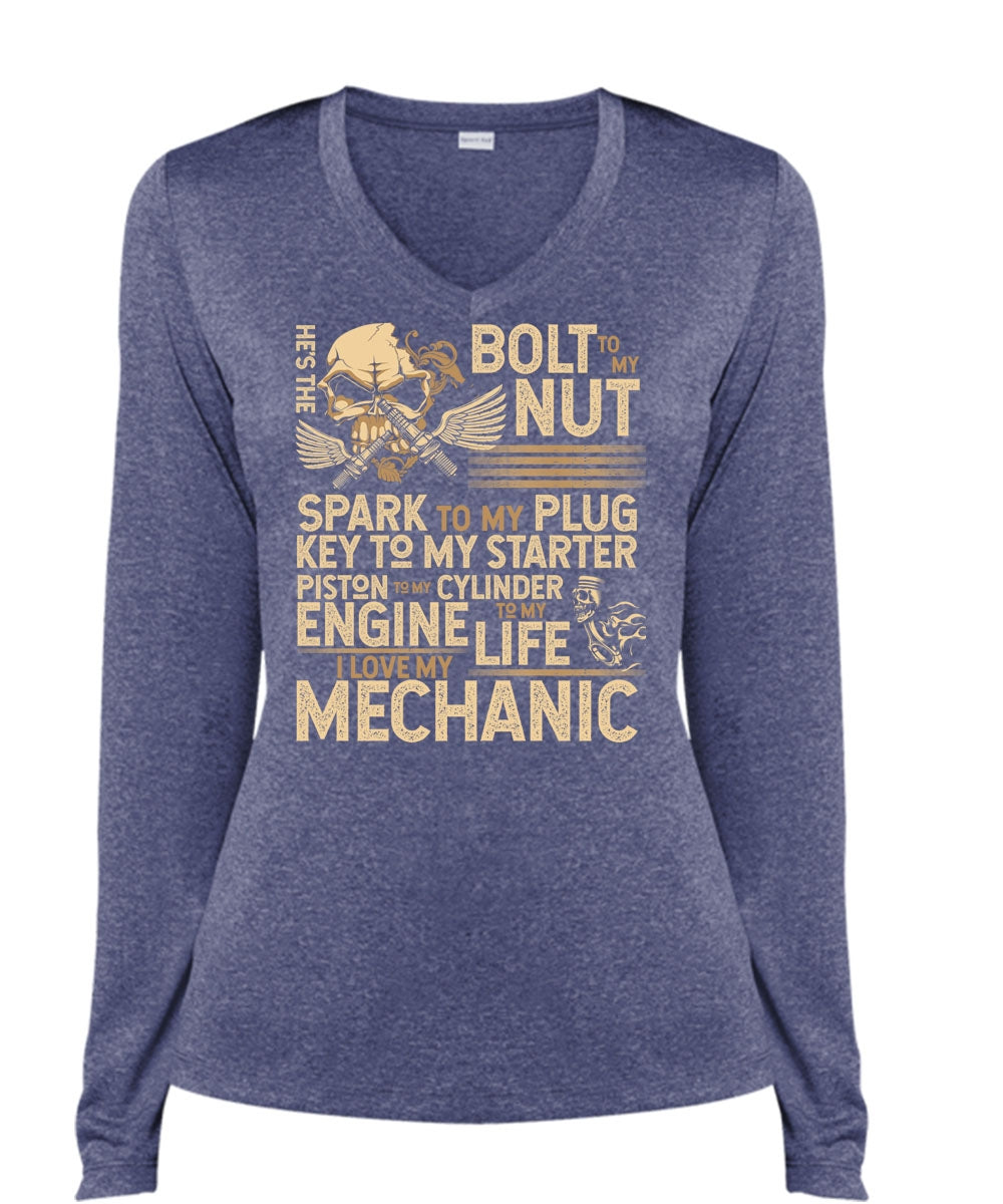 I Love My Mechanic T Shirt, Engine Life T Shirt, Cool Shirt (Ladies LS Heather V-Neck)