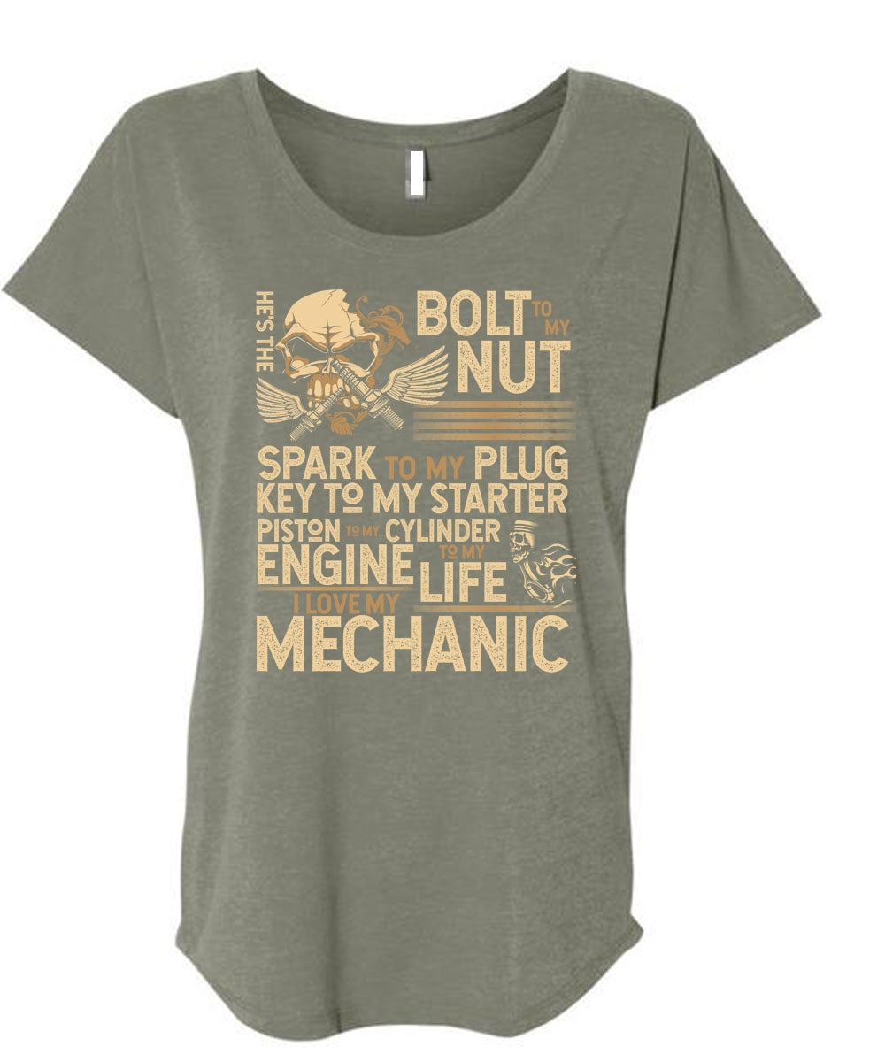 I Love My Mechanic T Shirt, Engine Life T Shirt, Cool Shirt (Ladies' Triblend Dolman Sleeve)