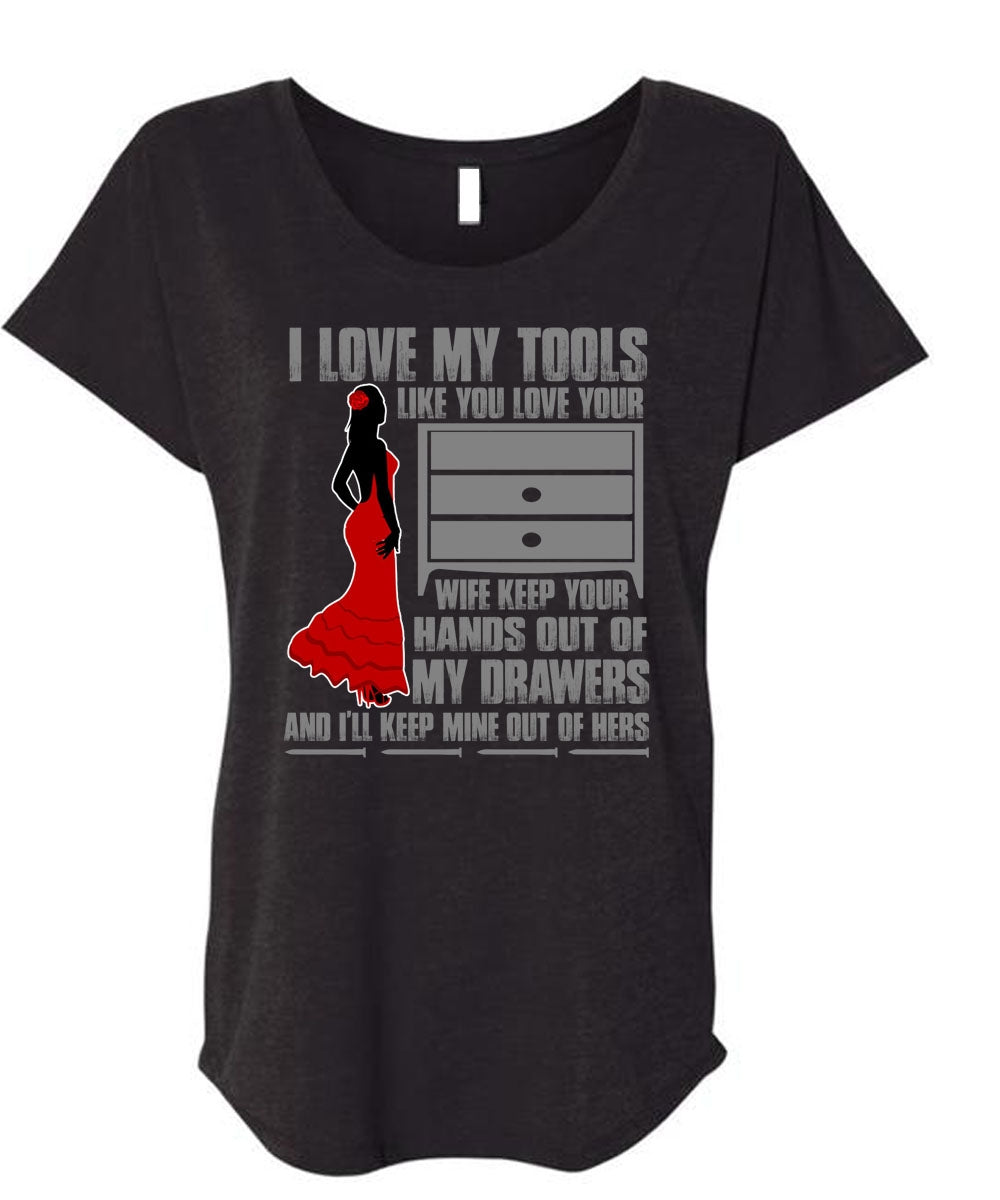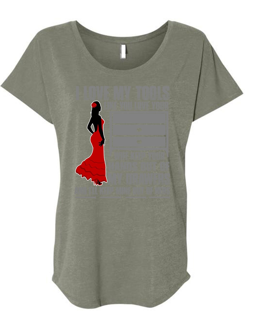 I Love My Tools T Shirt, My Drawers T Shirt, Cool Shirt (Ladies' Triblend Dolman Sleeve)