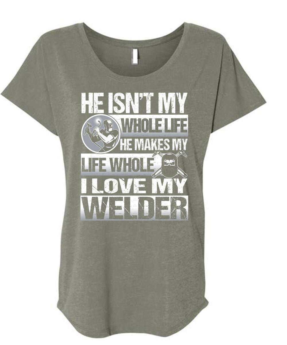 I Love My Welder T Shirt, He Makes My Life T Shirt, Cool Shirt (Ladies' Triblend Dolman Sleeve)