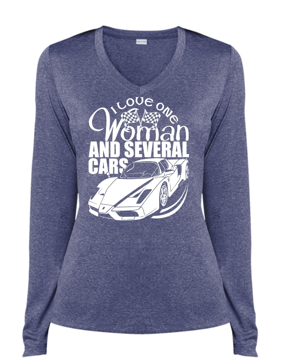 I Love One Woman And Several Cars T Shirt, Being A Driver T Shirt, Cool Shirt (Ladies LS Heather V-Neck)