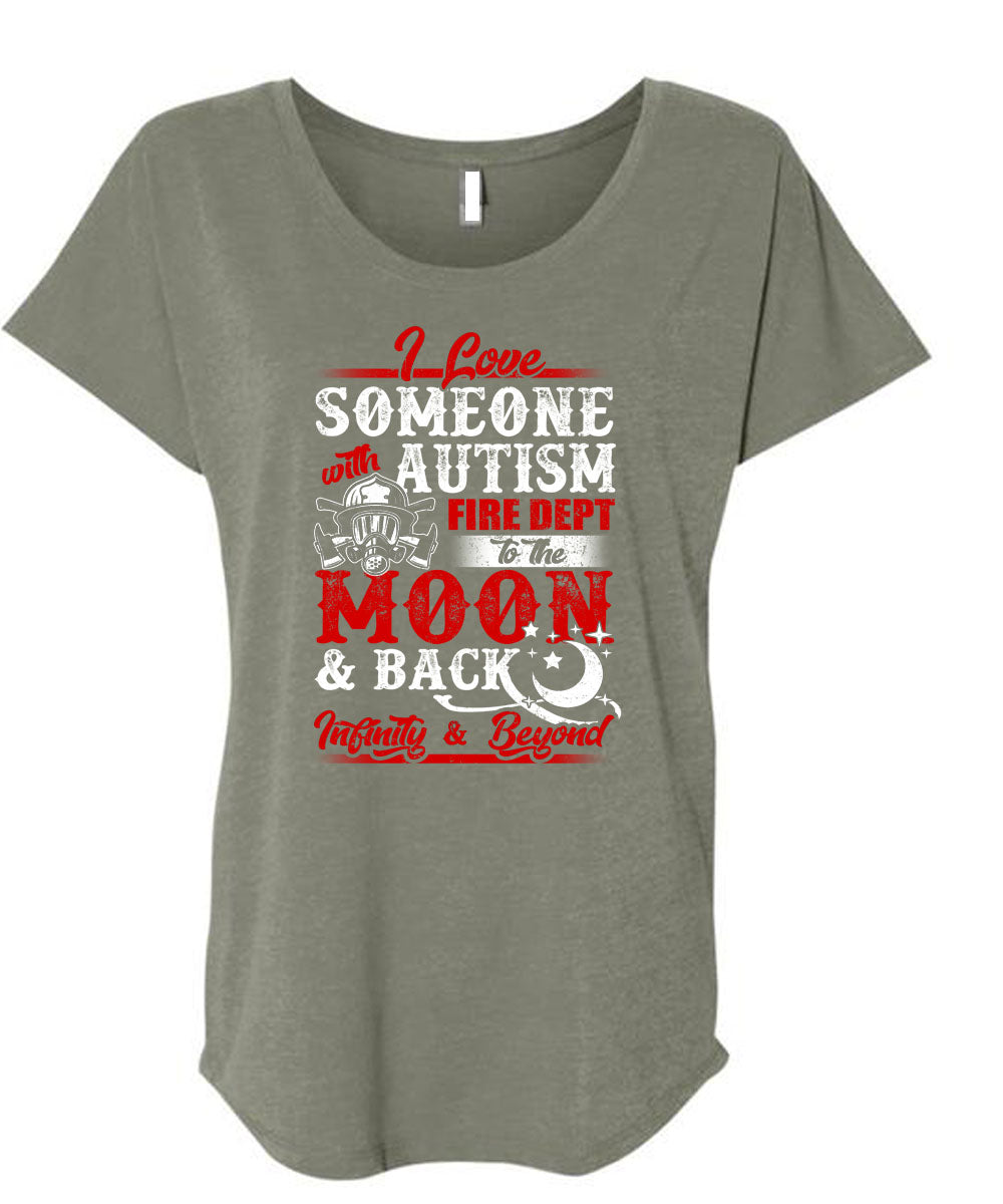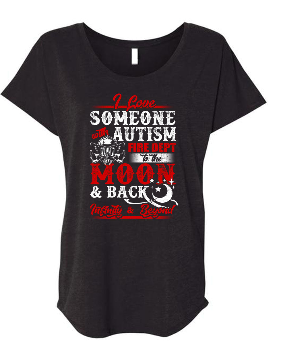 I Love Someone With Autism T Shirt, Fire Dept To The Moon T Shirt, Cool Shirt (Ladies' Triblend Dolman Sleeve)