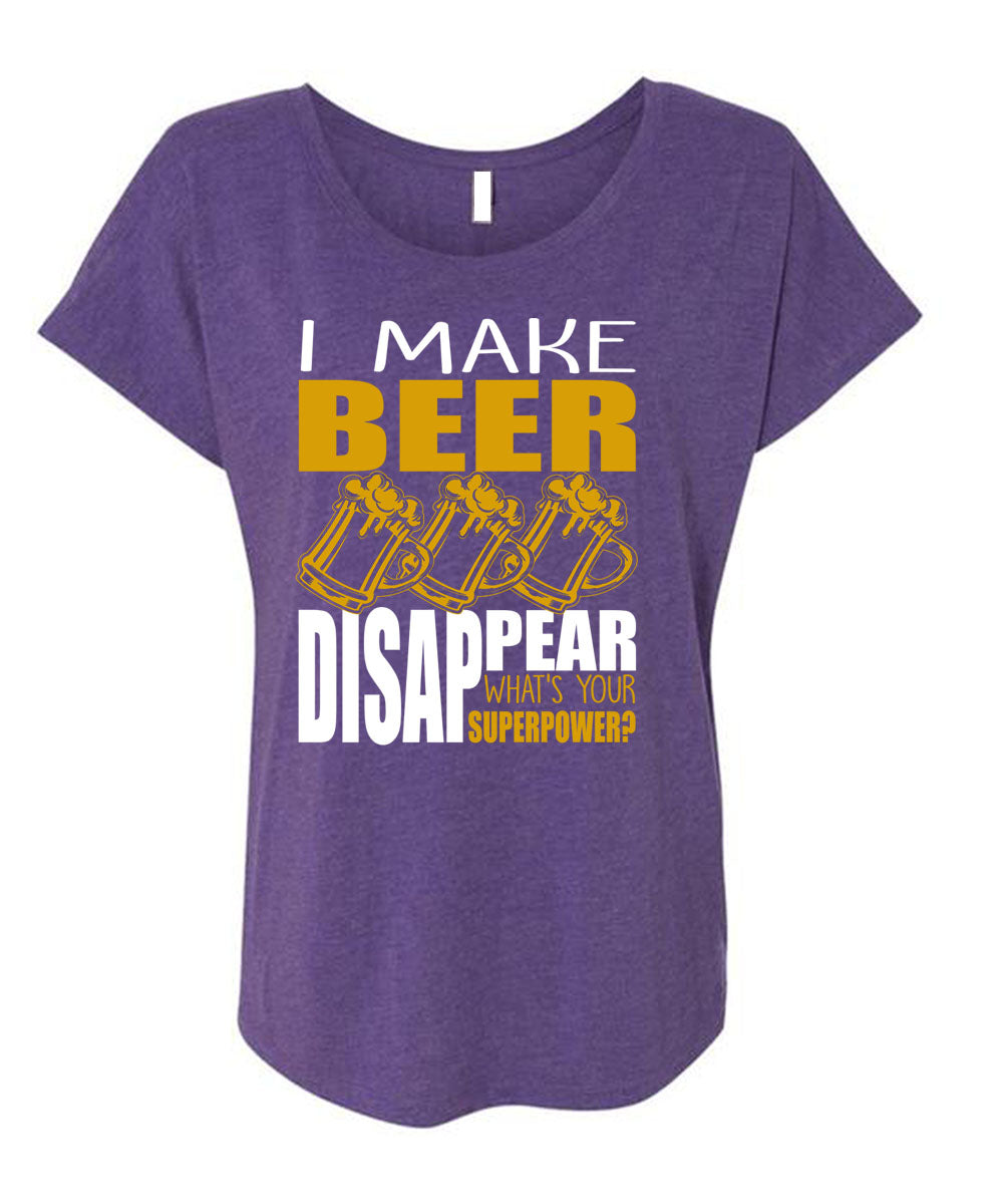 I Make Beer Disappear T Shirt, Being A Beer Drinker T Shirt, Cool Shirt (Ladies' Triblend Dolman Sleeve)